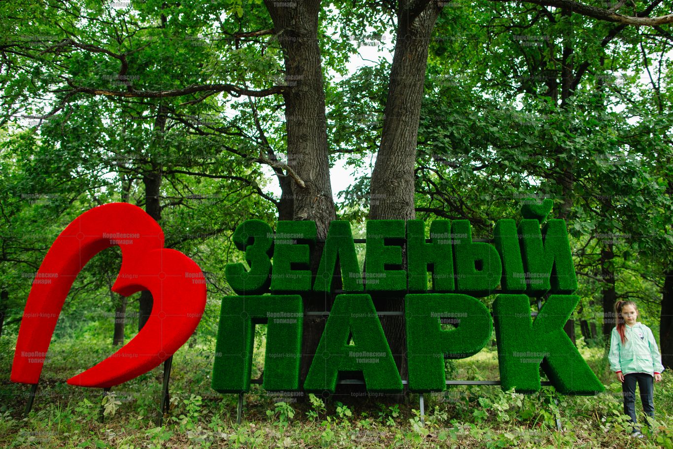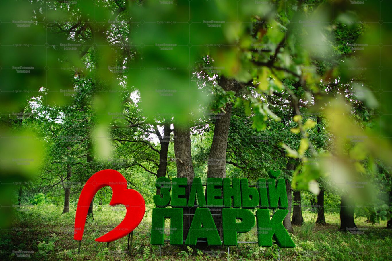 Состав композиции: Сердце (ДхШхВ) 190х30х210 см; Буквы ЗЕЛЕНЫЙ h=80 см; Буквы ПАРК h=100 см.