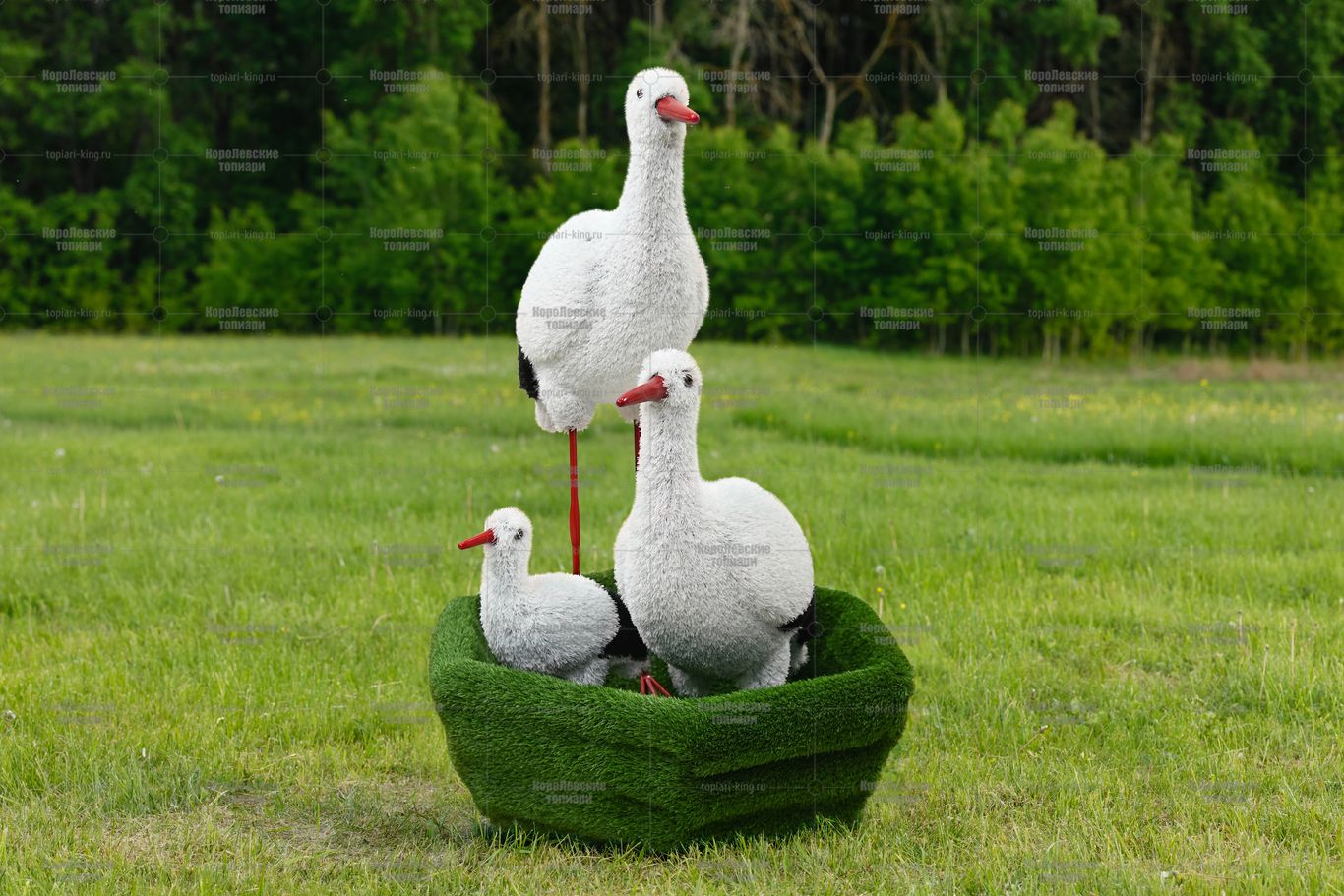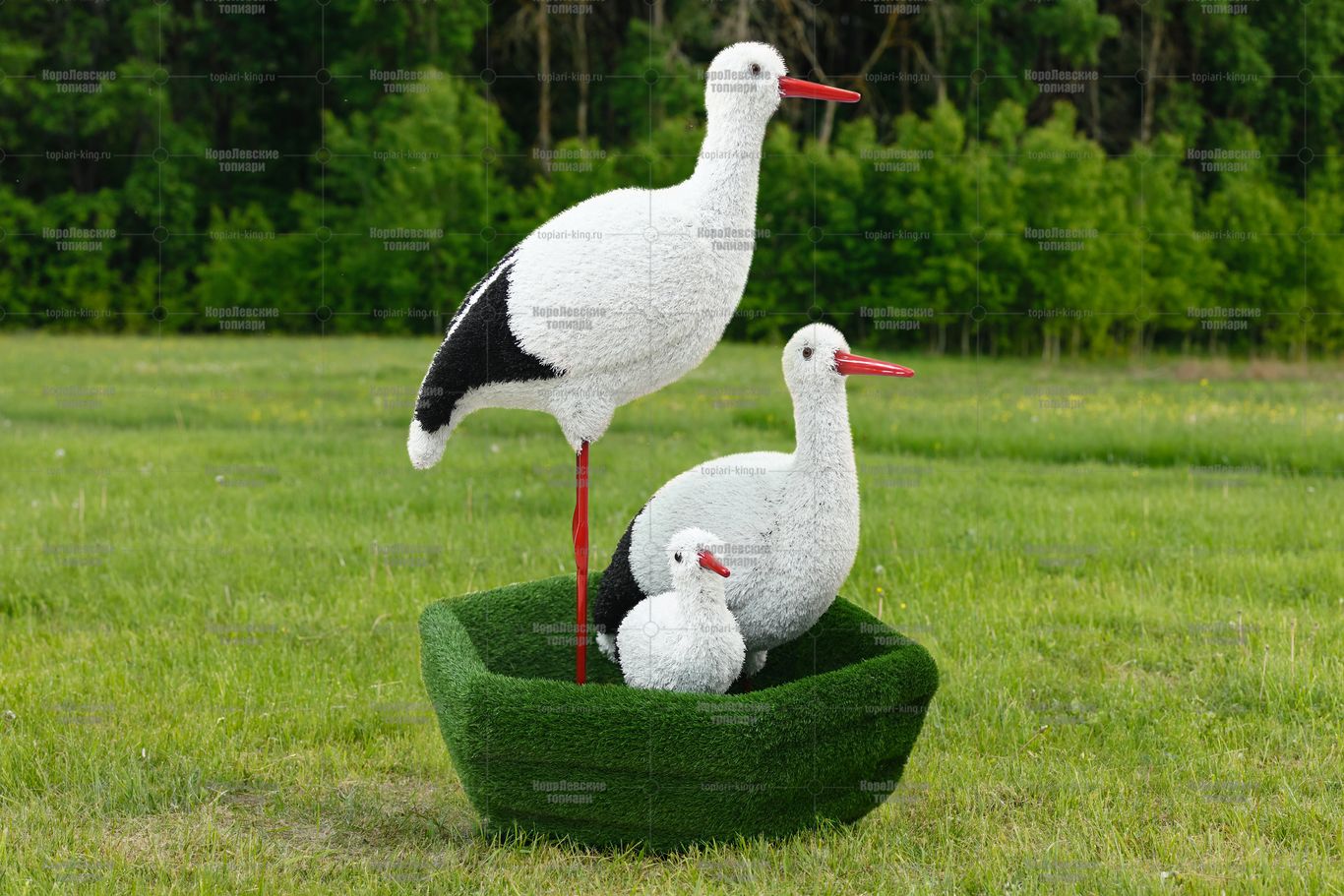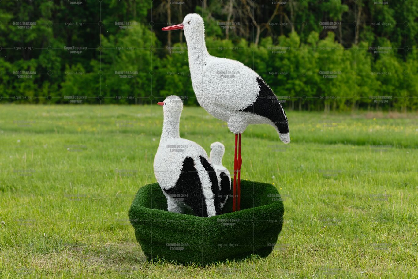 Топиари 3 аиста в гнезде,семья — газон Deluxe Green + Есо