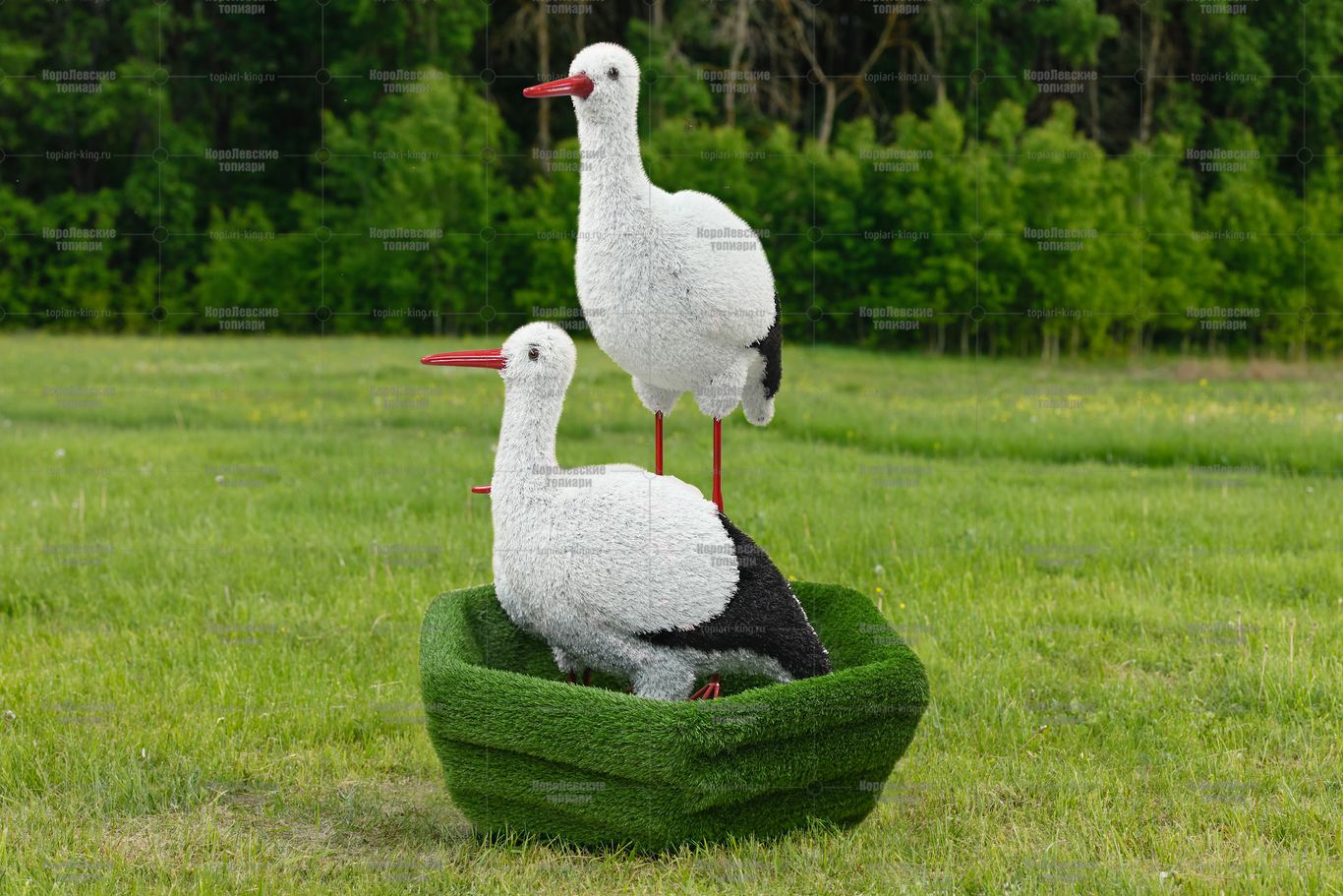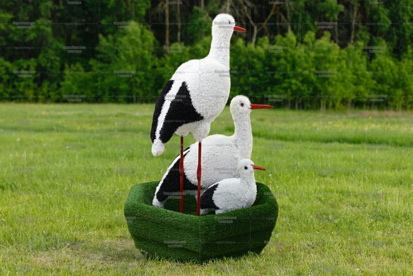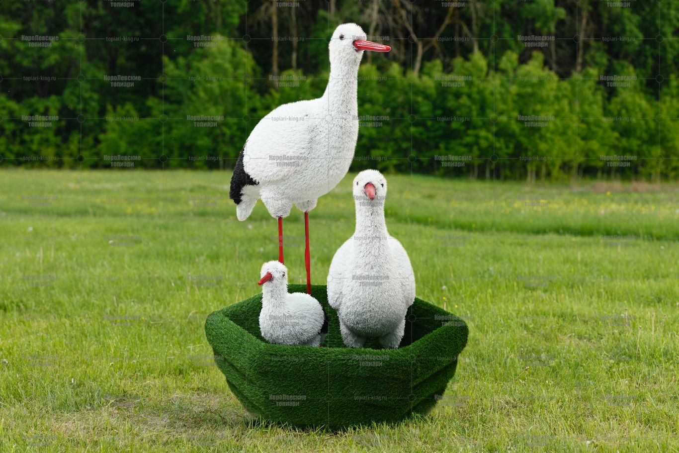Топиари 3 аиста в гнезде,семья — газон Deluxe Green + Есо