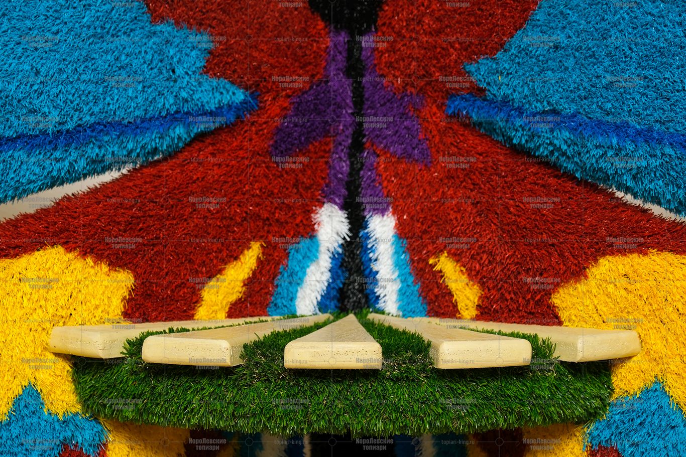 Топиари бабочка — лавочка №2, сосна — газон Eco