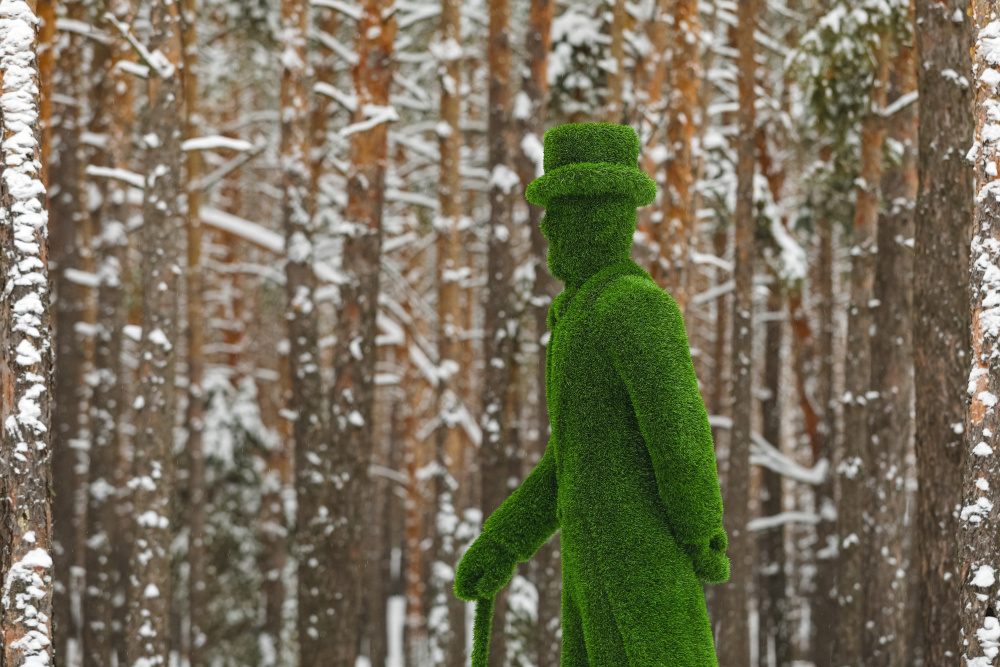 Топиари джентльмен в шляпе с тростью — газон Eco