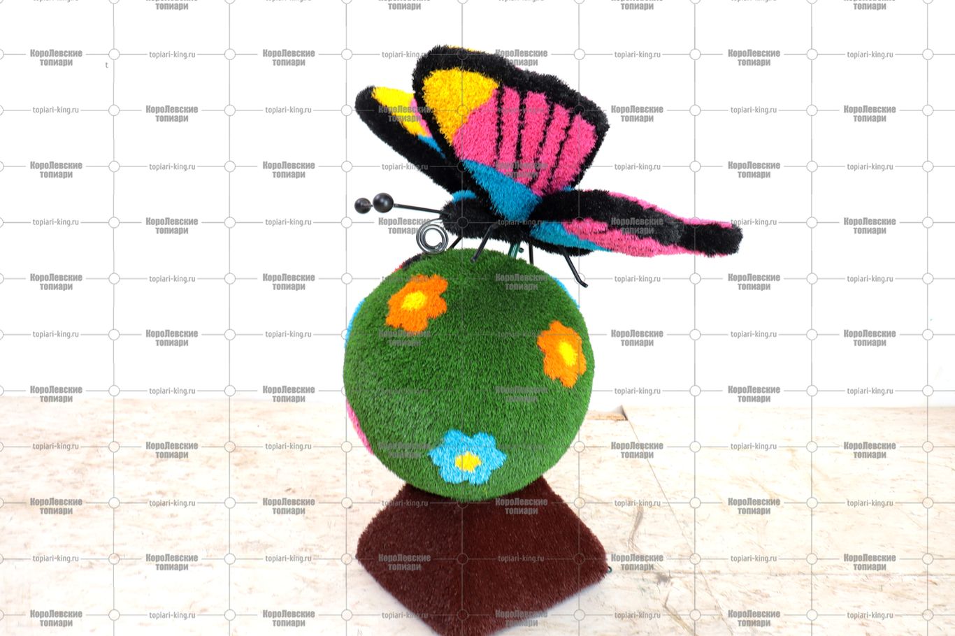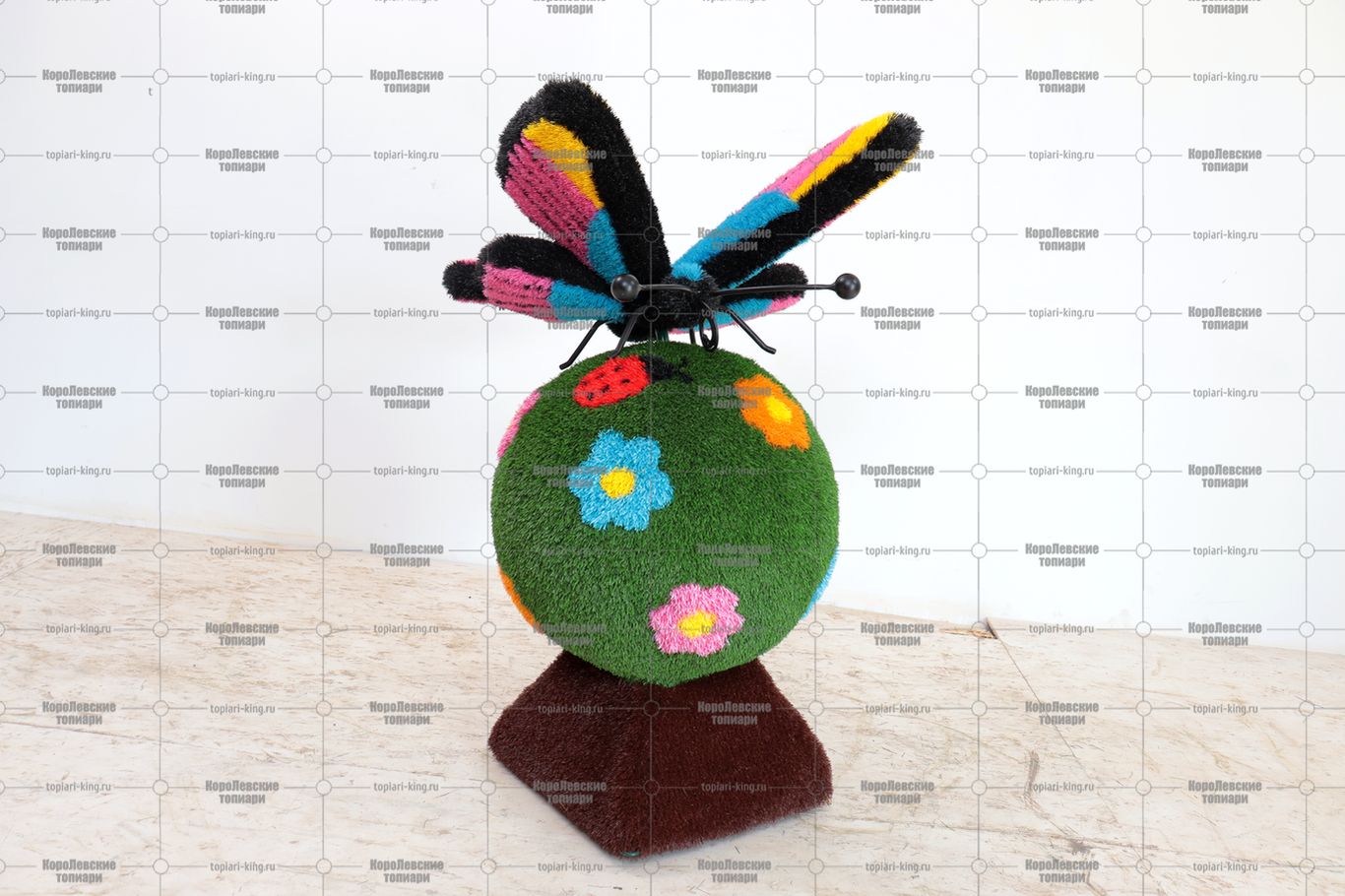 Топиари композиция бабочка Лайза на шаре полянка, размер S — газон Eco