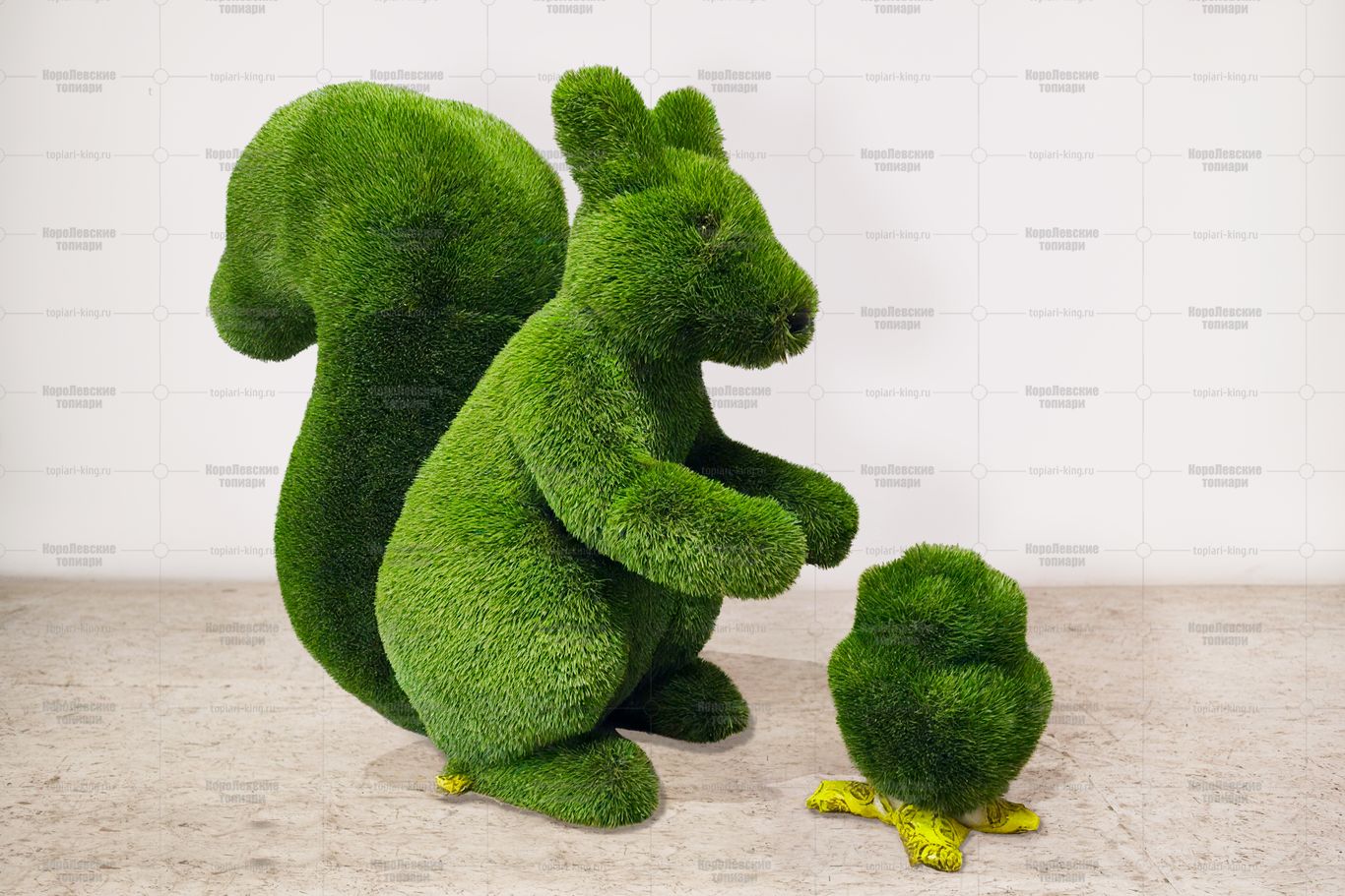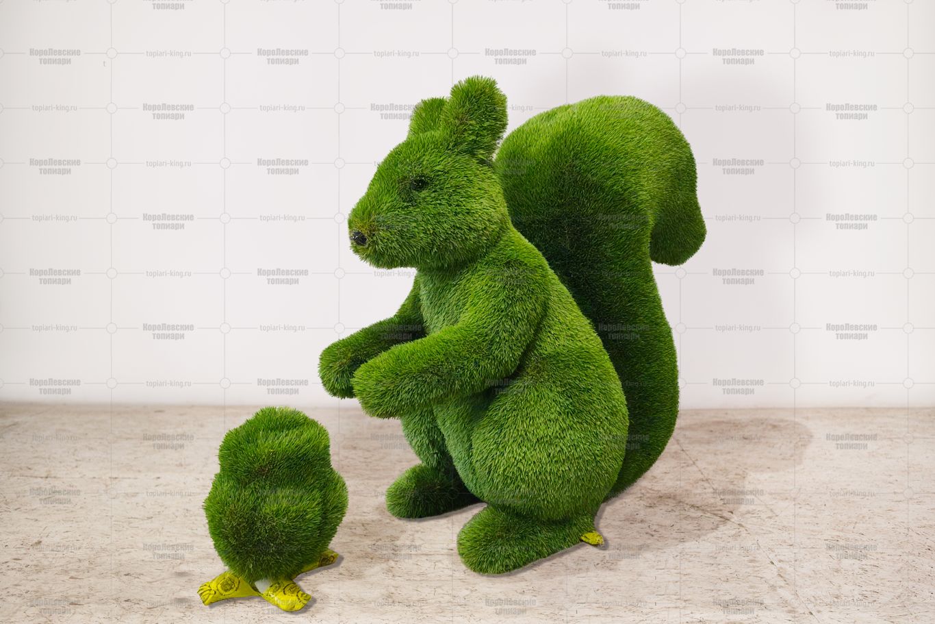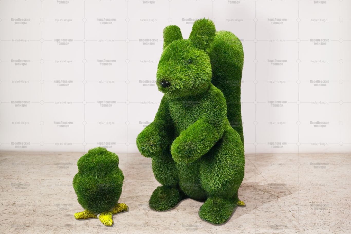 Топиари композиция белочка с шишкой рядом, h=105см, газон – Premium
