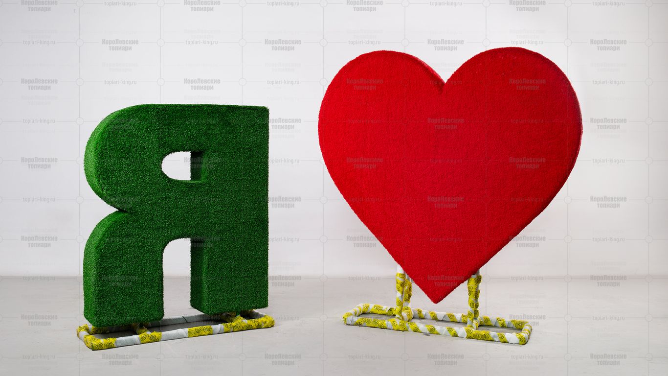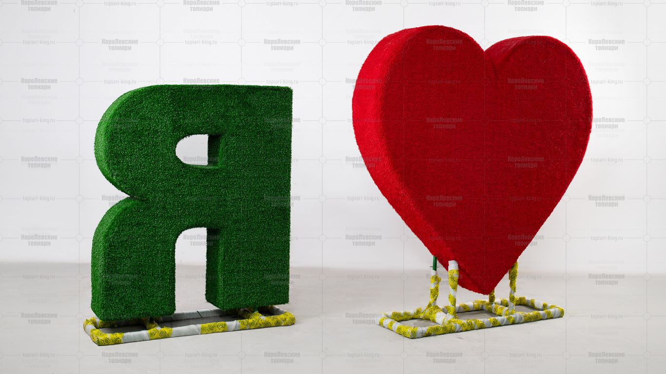Топиари композиция буква Я h=135см, сердце h=160см — газон Есо