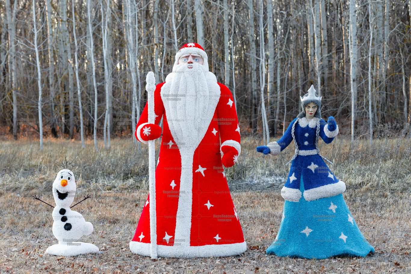 Дед Мороз (ДхШхВ) 154х130х267см; Снегурочка (ДхШхВ) 150х125х210см;снеговик малыш (ДхШхВ) 67х73х124см |