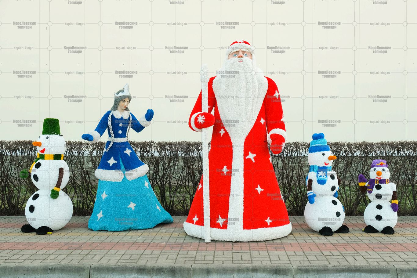 Топиари композиция дед мороз, снегурочка, 3 снеговика — газон Eco