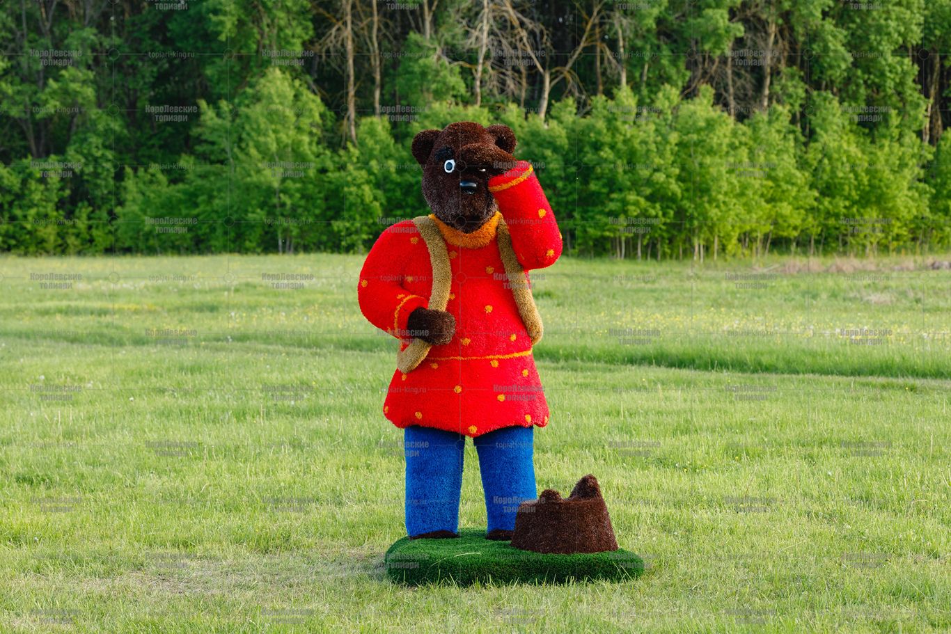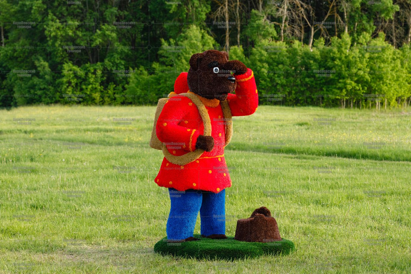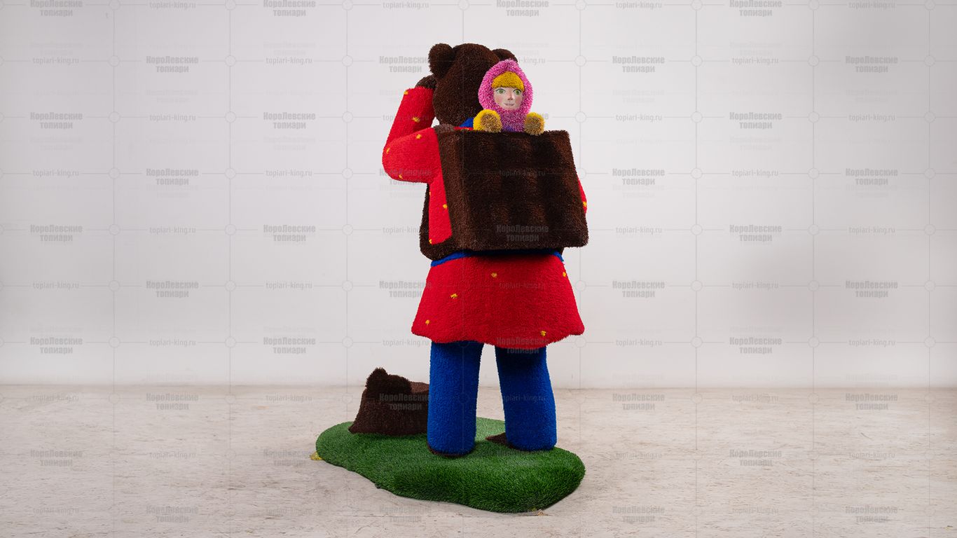 Топиари композиция девочка Мария и медведь Витюша — газон Eco