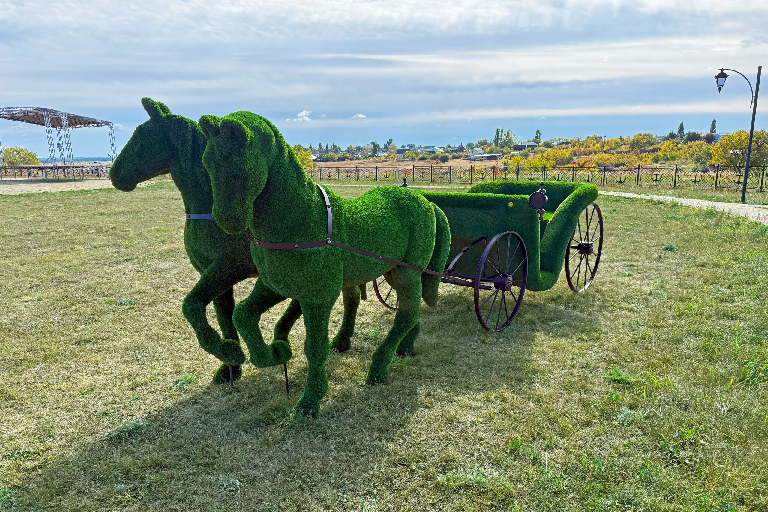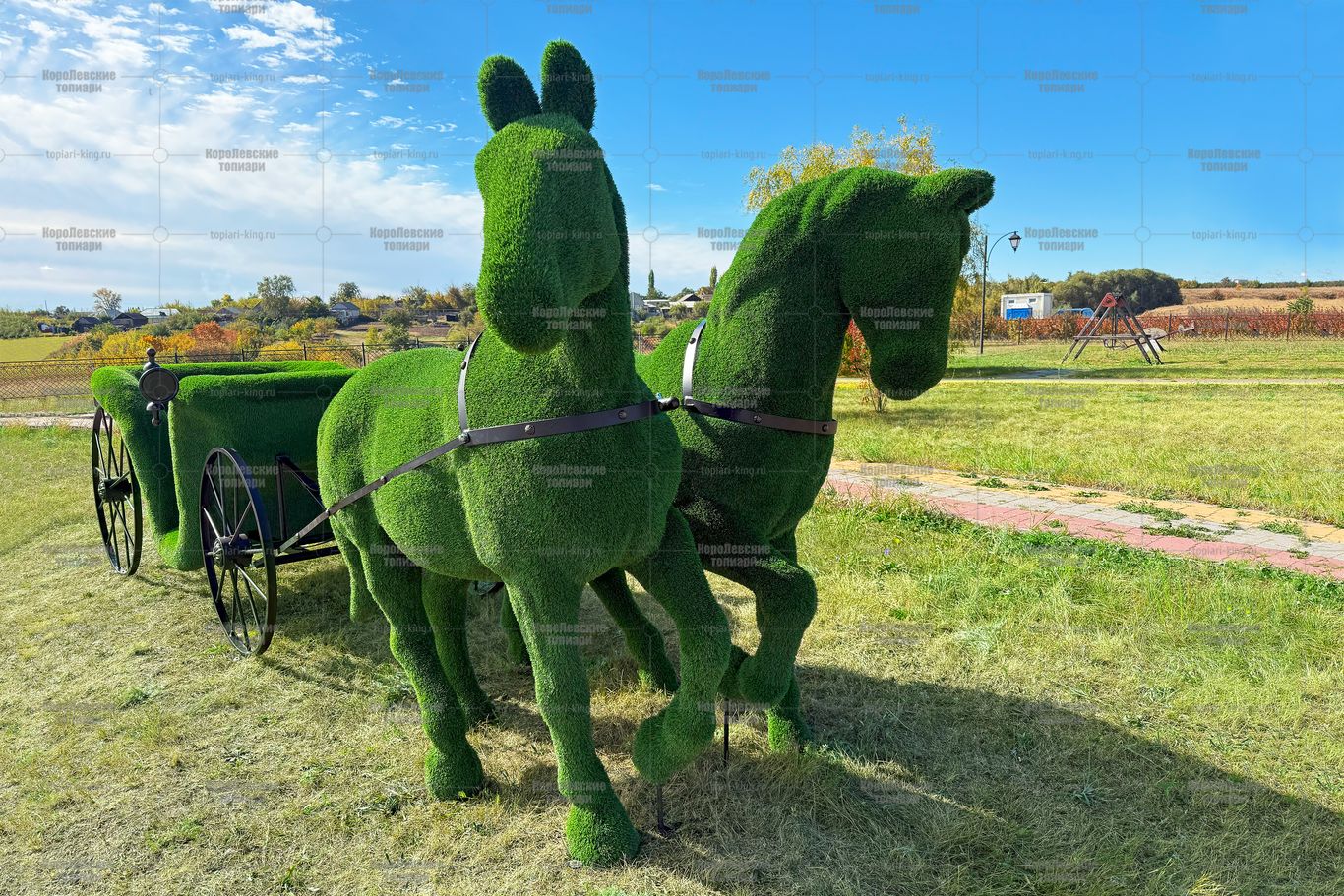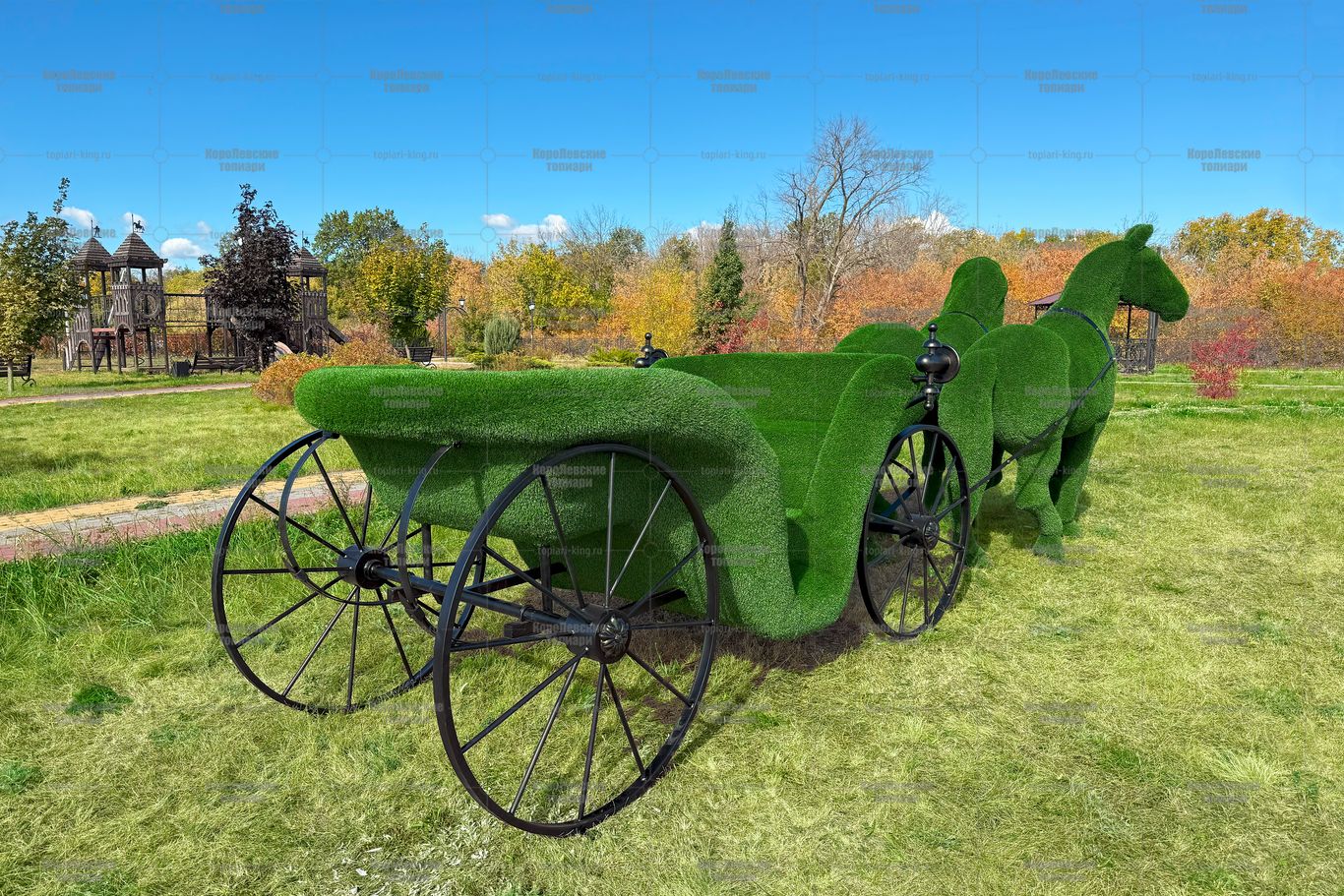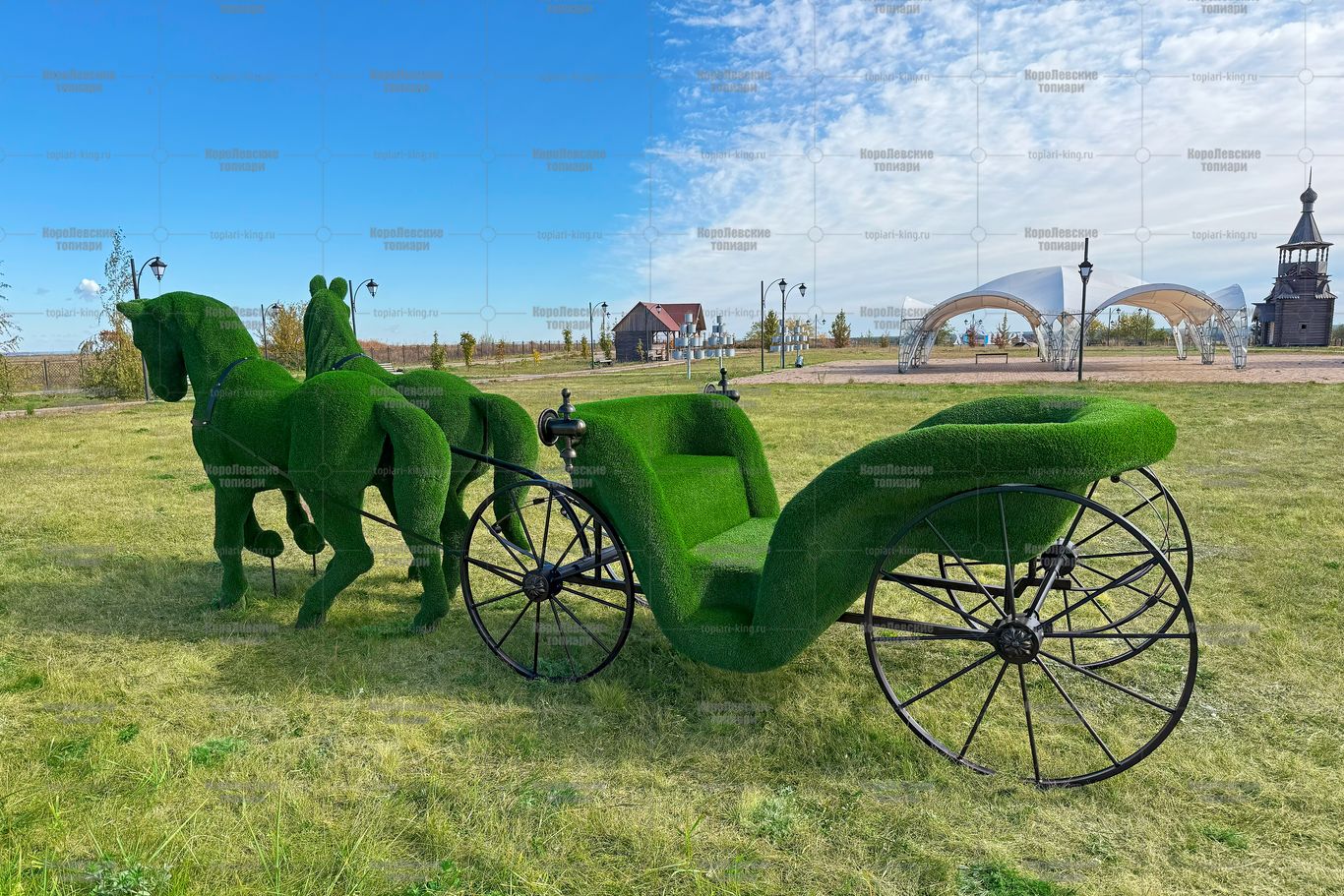 Топиари композиция карета с лошадьми — газон Есо