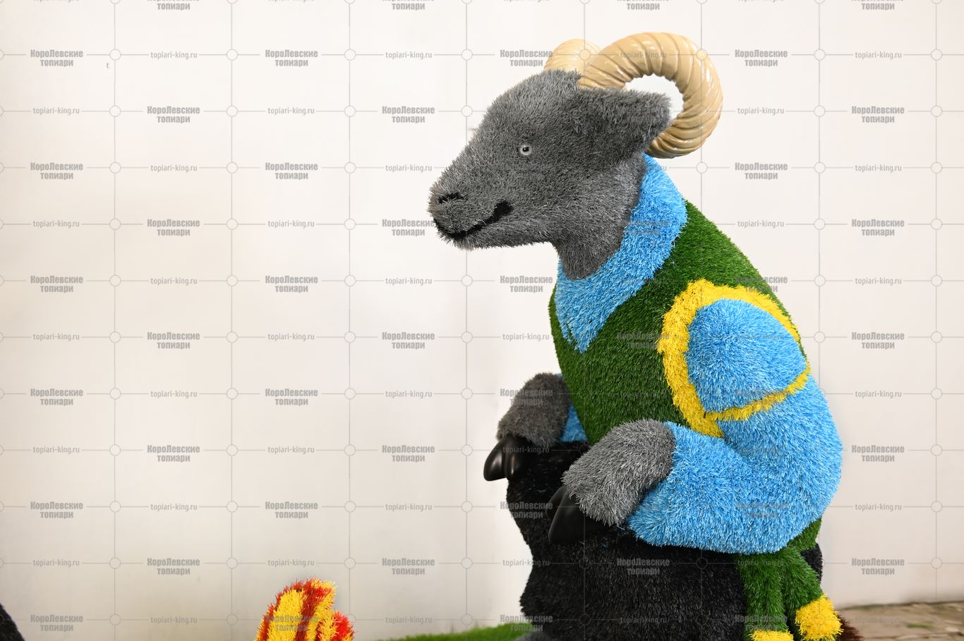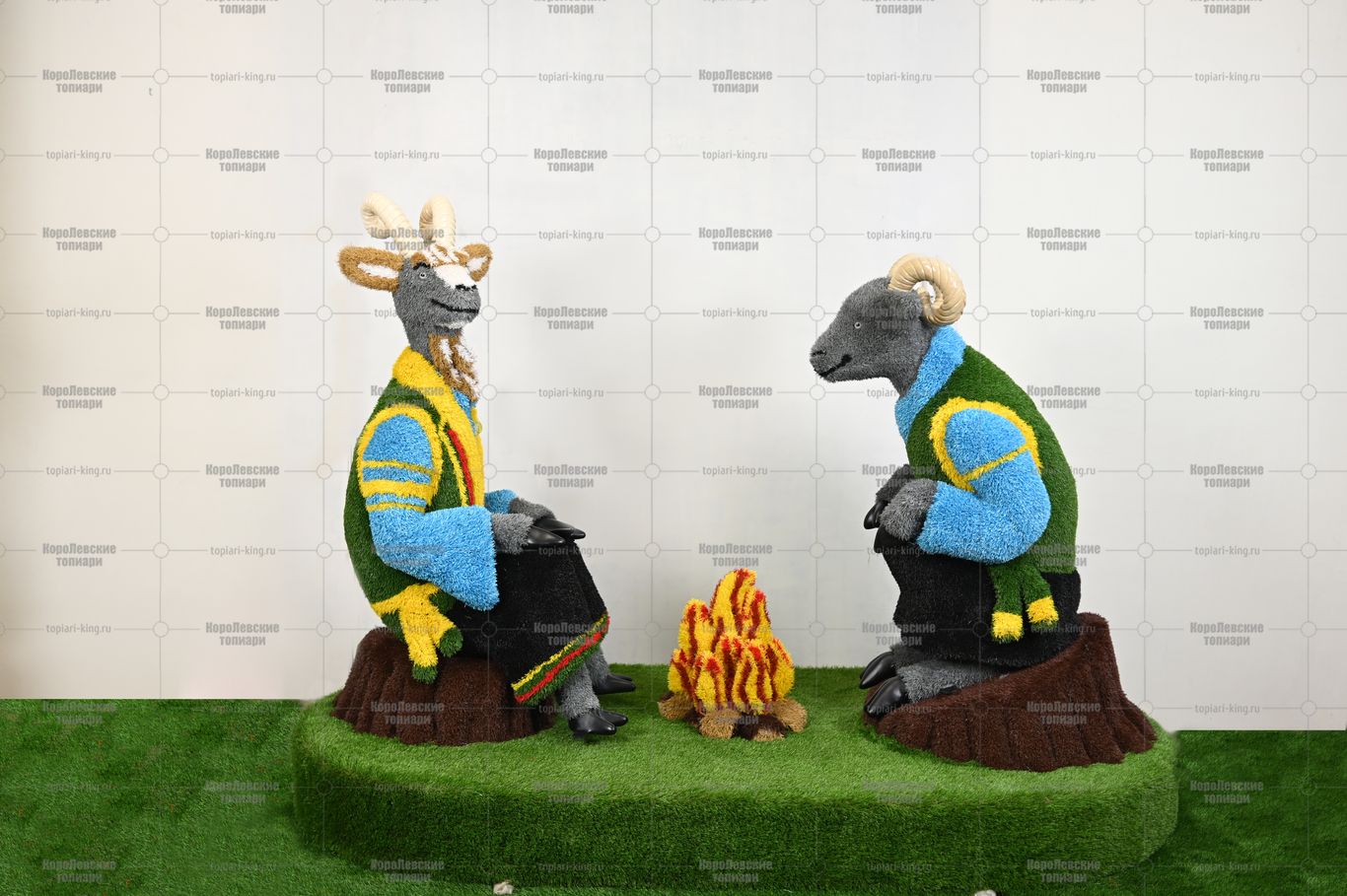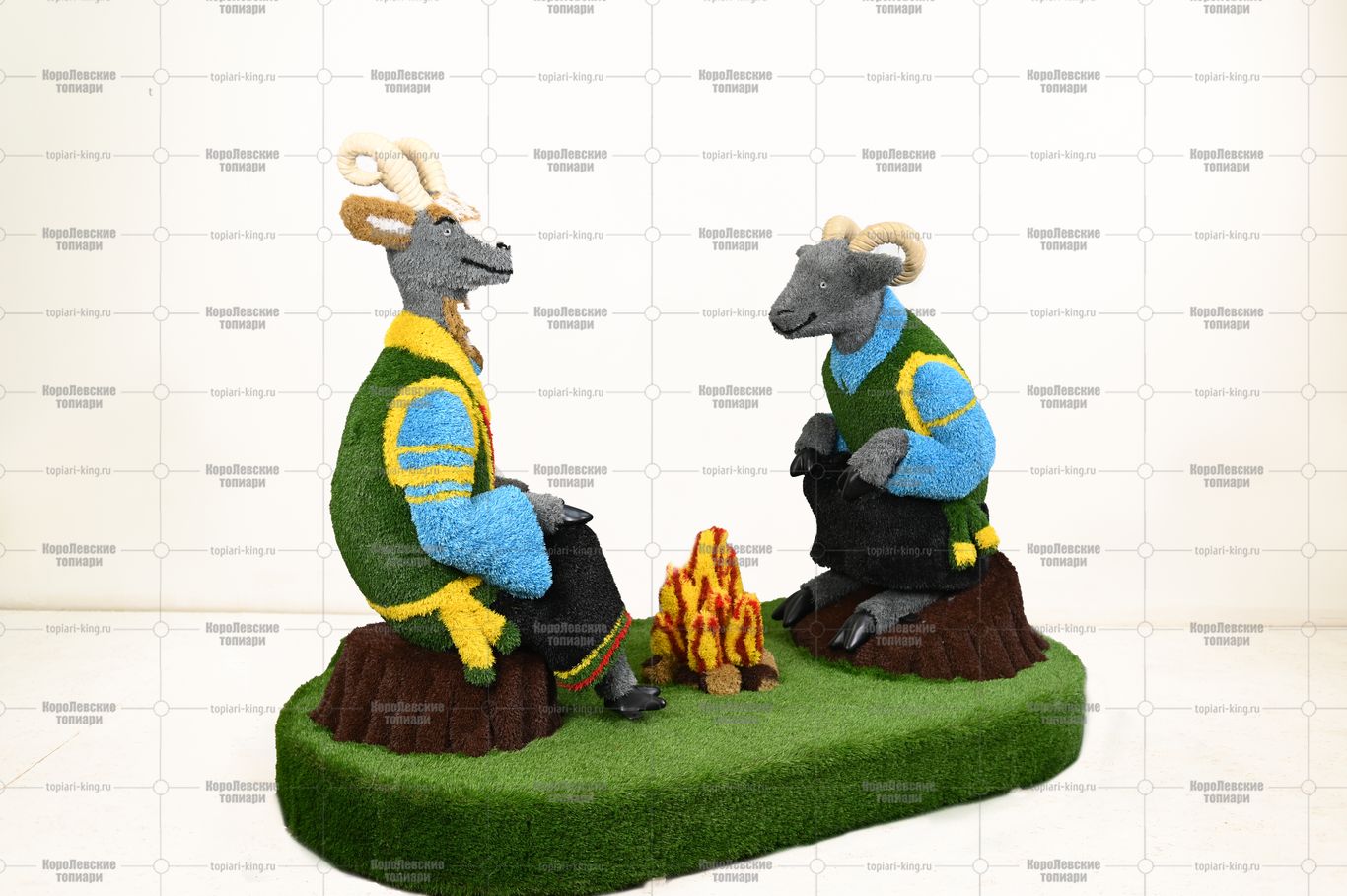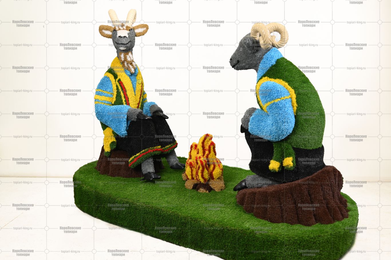 Топиари композиция козел и баран у костра — газон Eco