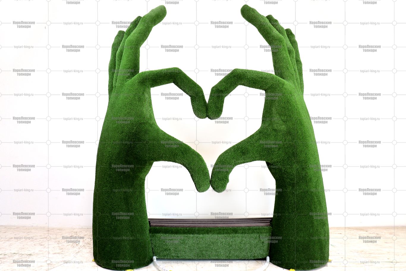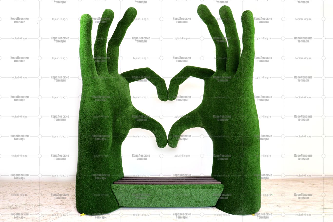 Топиари композиция руки-сердце-лавочка — газон Eco