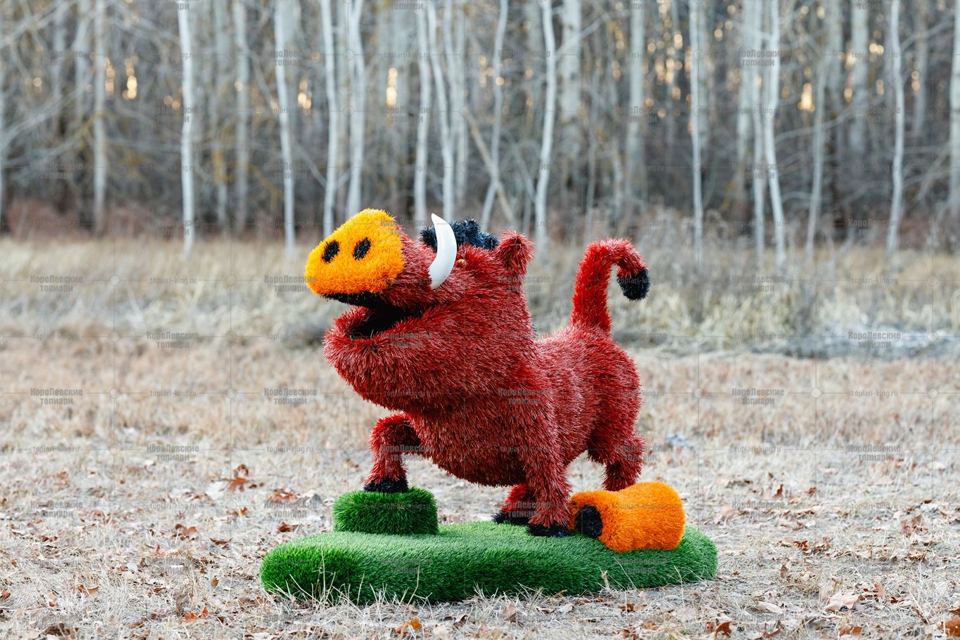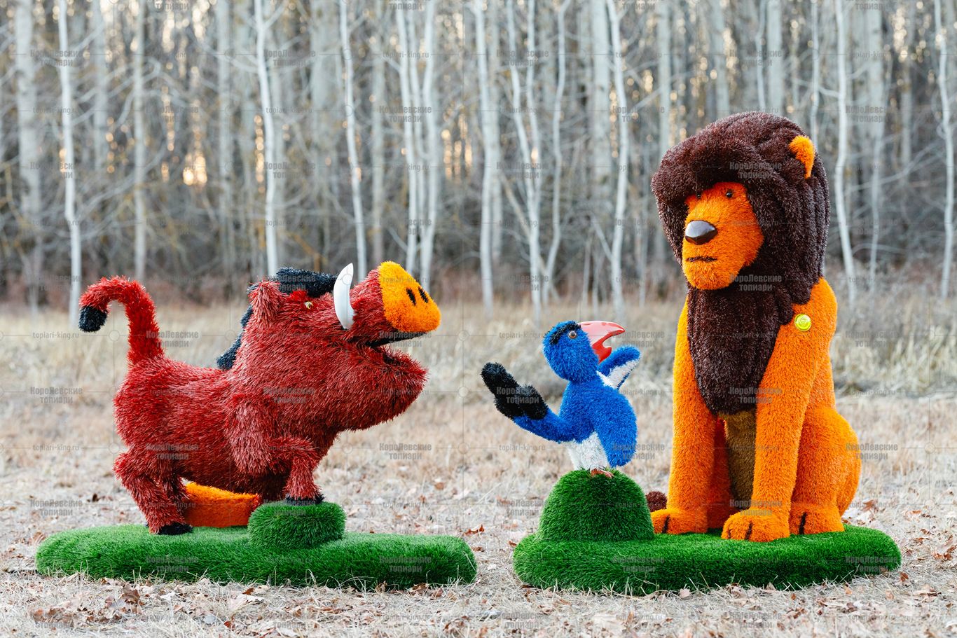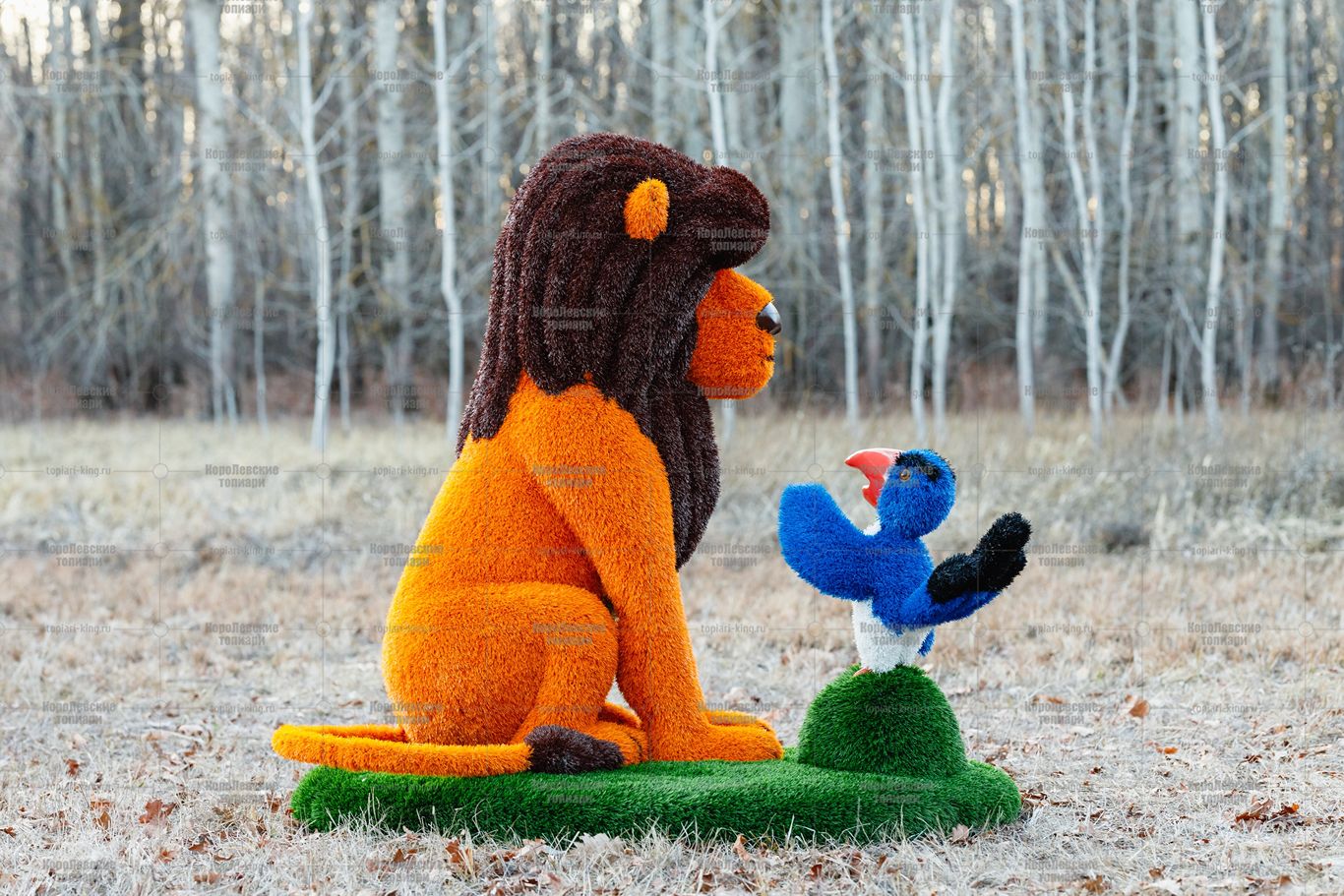 Топиари композиция лев с птичкой и кабан Валери — газон Deluxe + Eco
