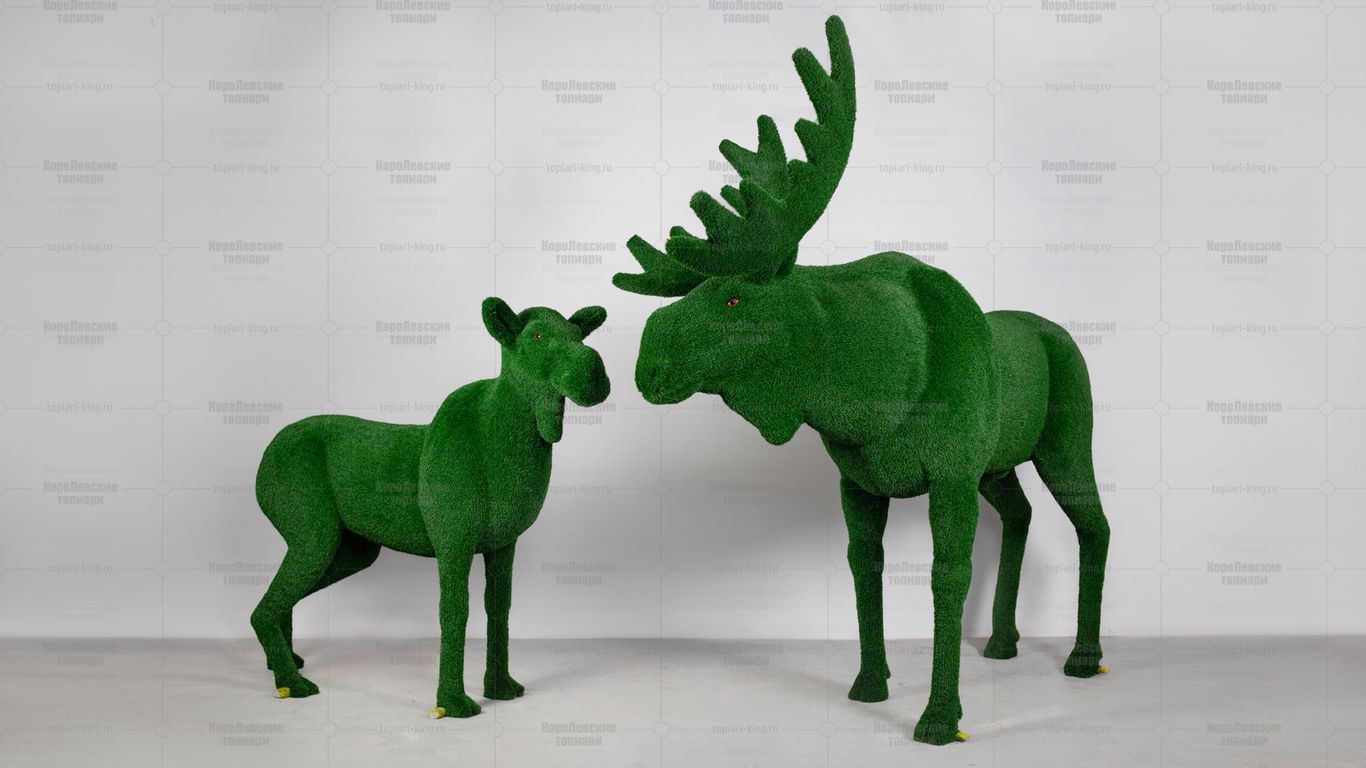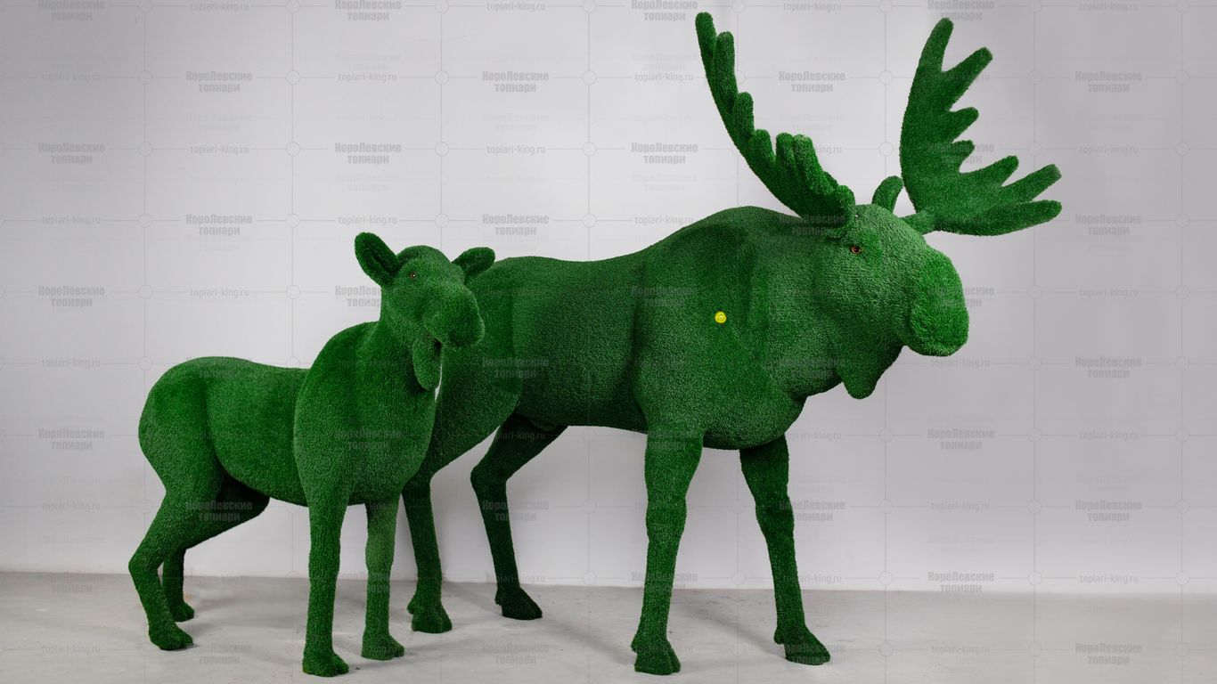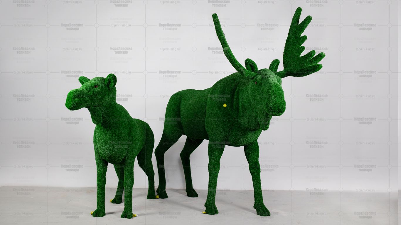 Топиари композиция лось Алкей и лосиха Галатея — газон Есо