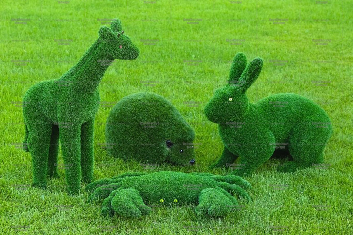 Топиари композиция малыши (заяц, жираф, ежик, краб) — газон Eco