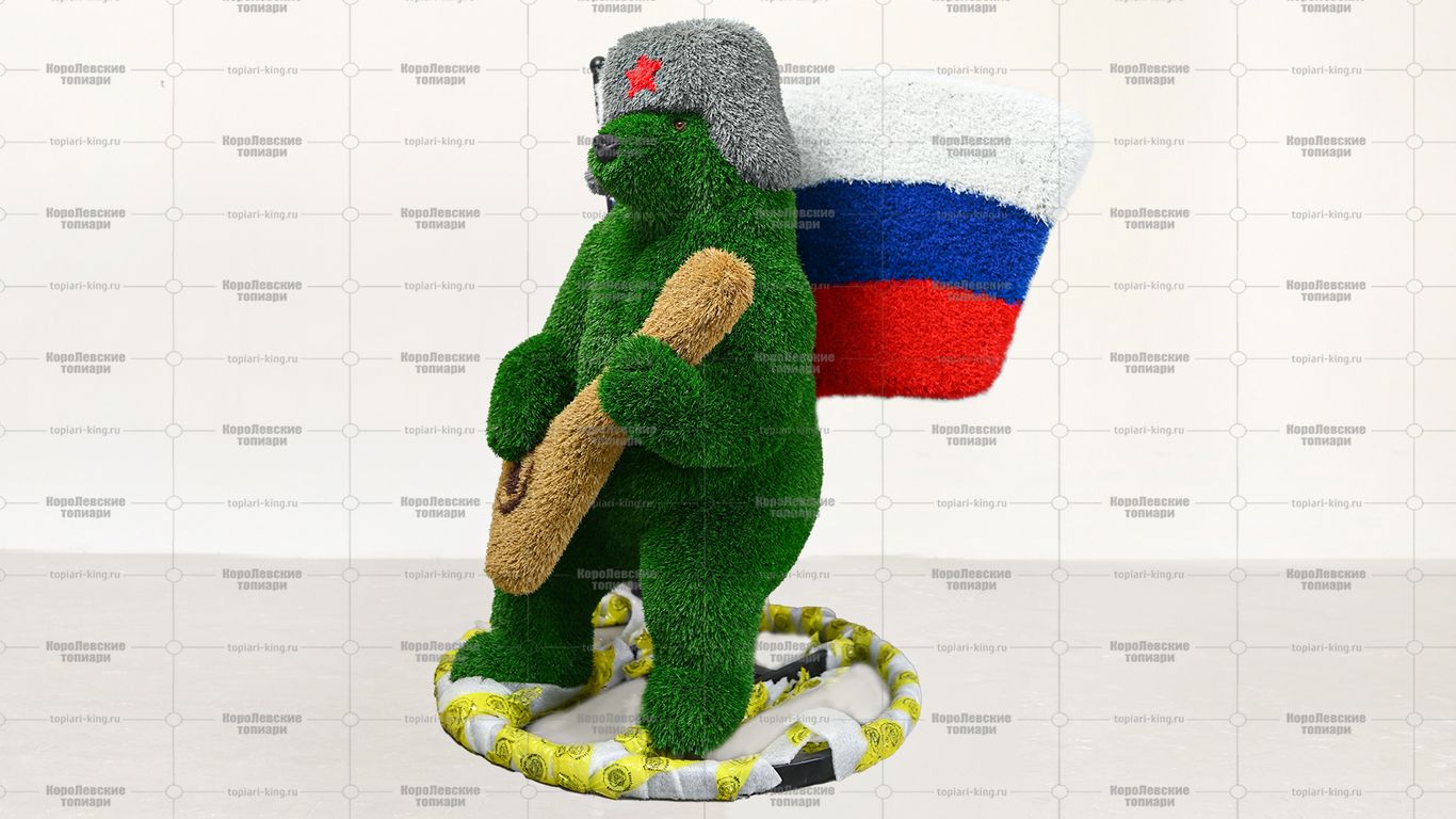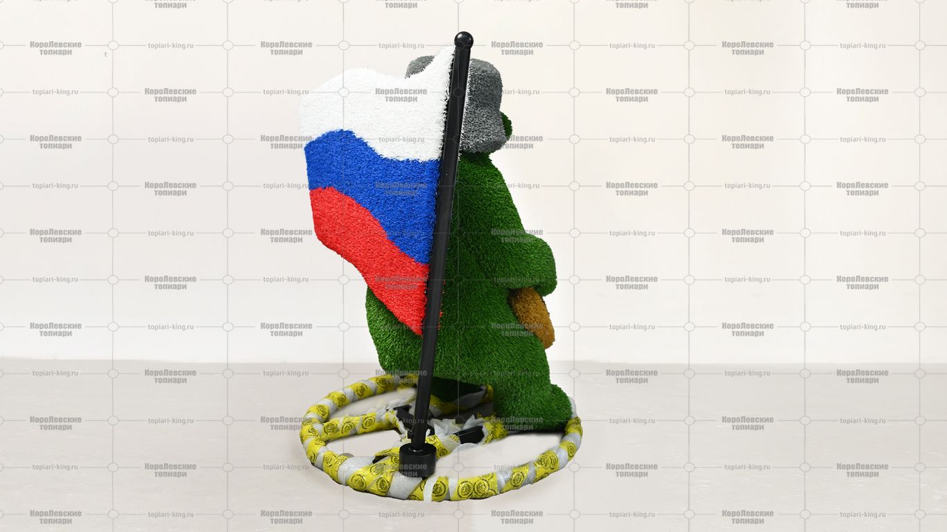 Состав композиции: флаг (ДхШхВ) 95х10х100 см; медведь (ДхШхВ) 60х50х100 см