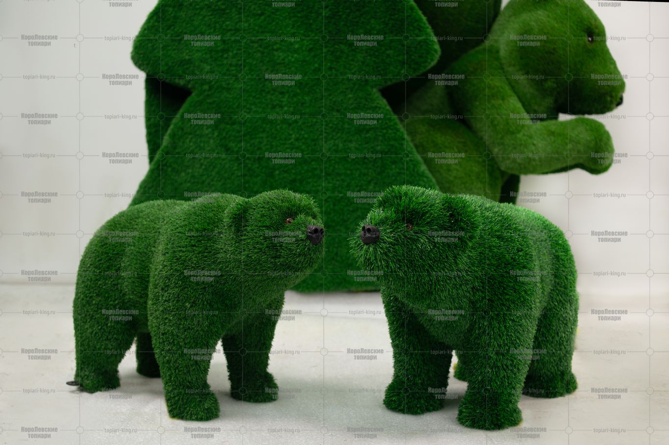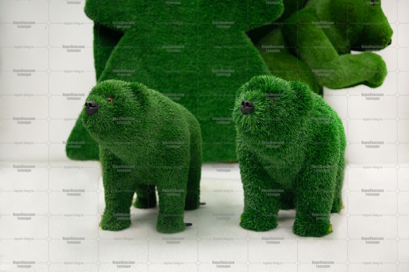 Топиари композиция медведи Стик, братья — газон Deluxe Green + Eco (сравнение газонов)