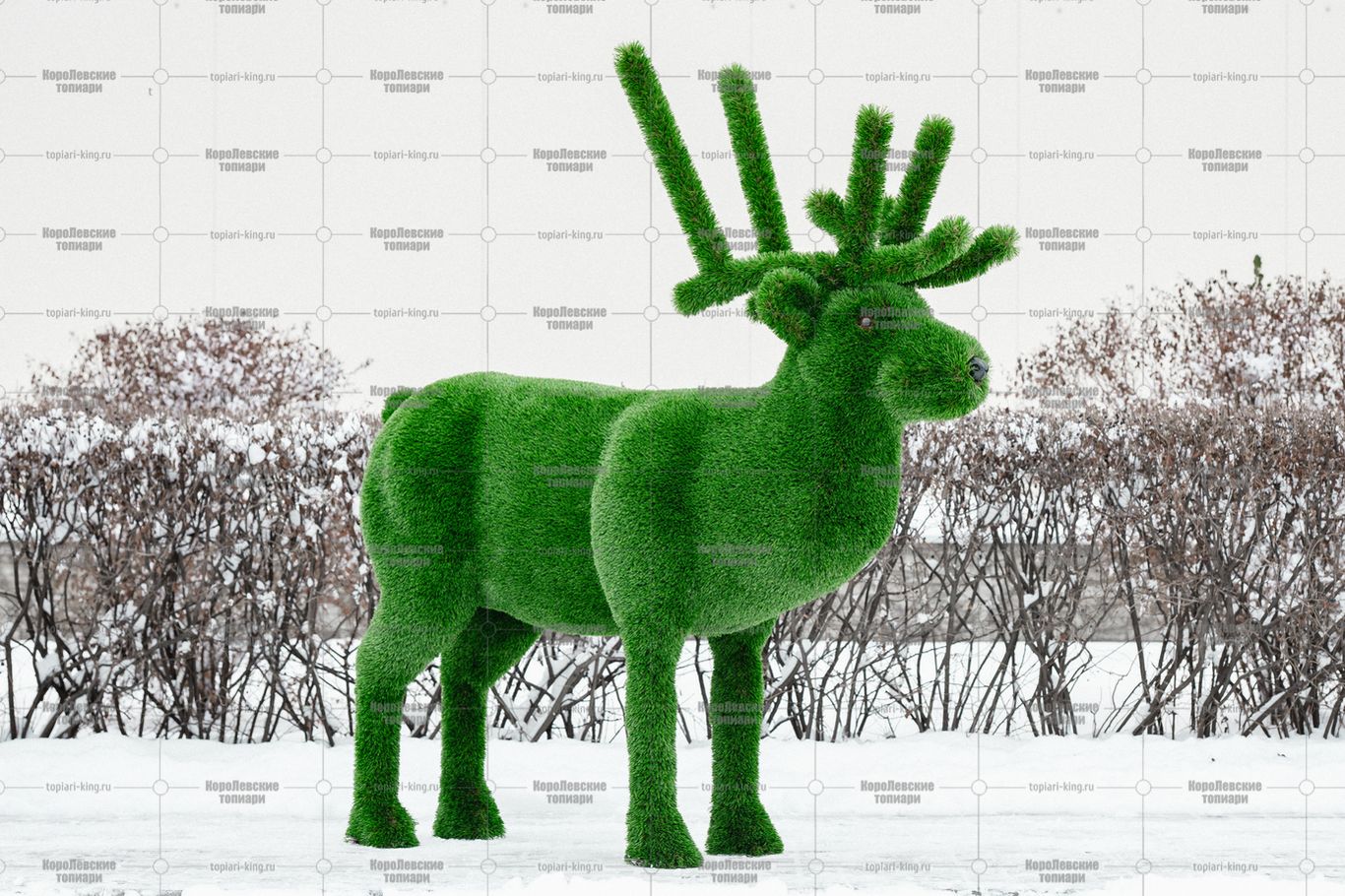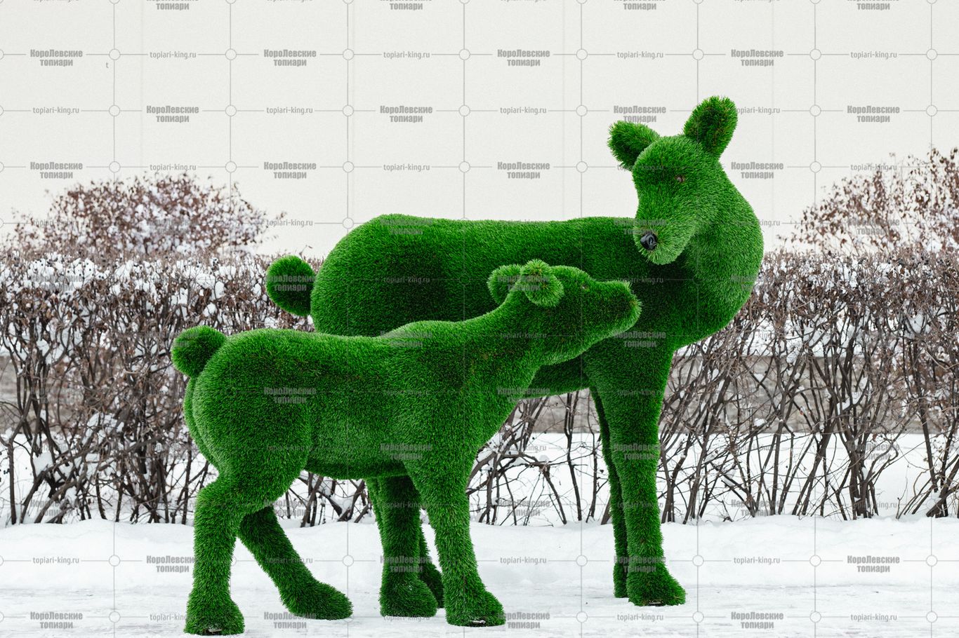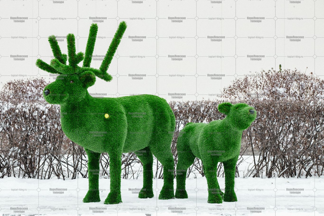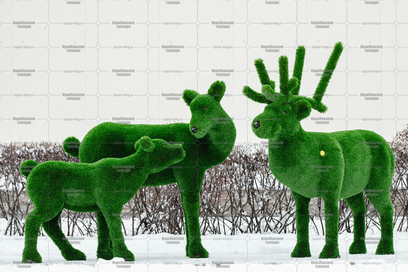 Топиари композиция олень самочка Нелли, олень Норди ll, олень малыш Том — газон Deluxe