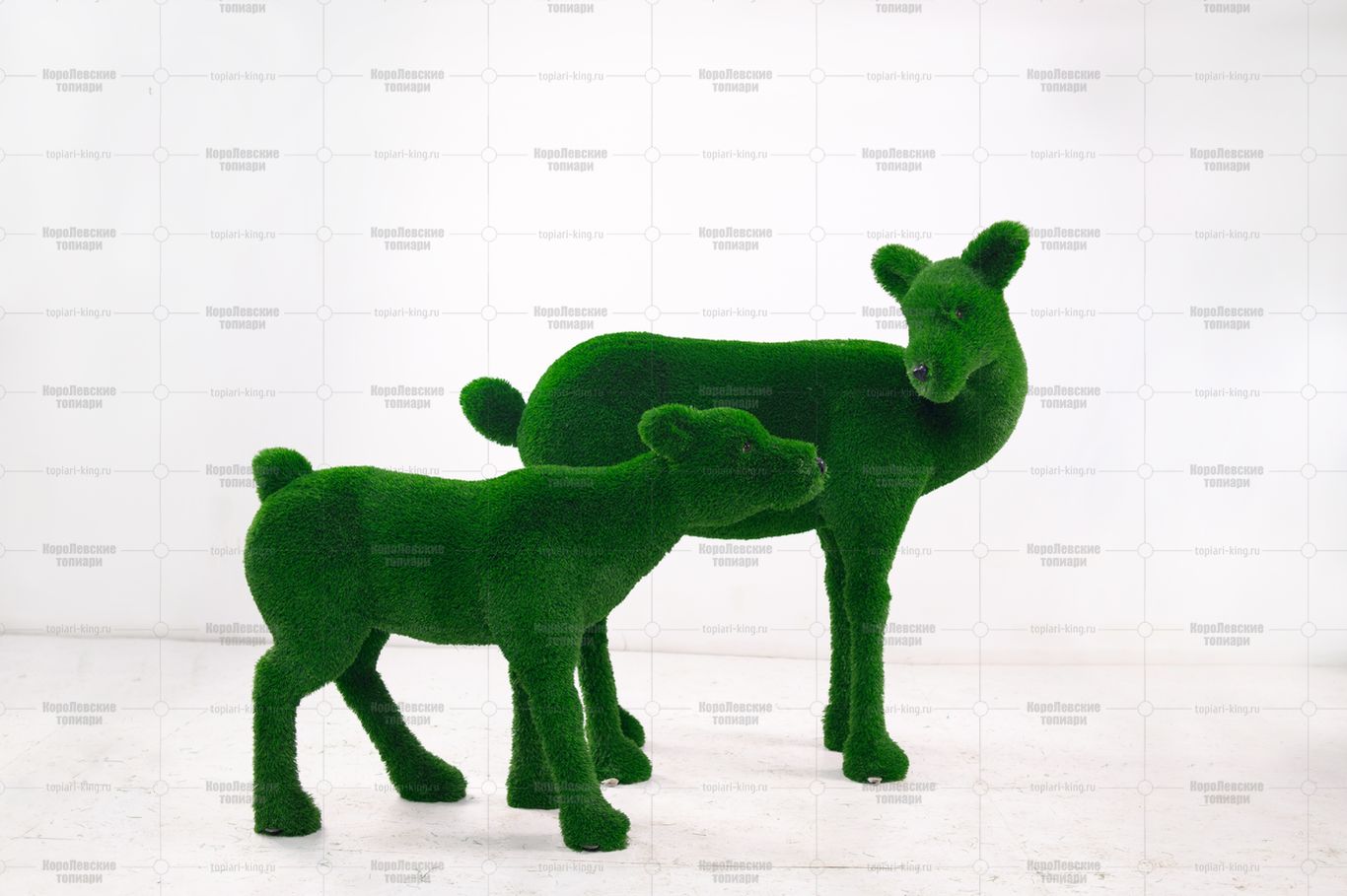 Топиари композиция олени, мама с малышом Томом — газон Deluxe Green
