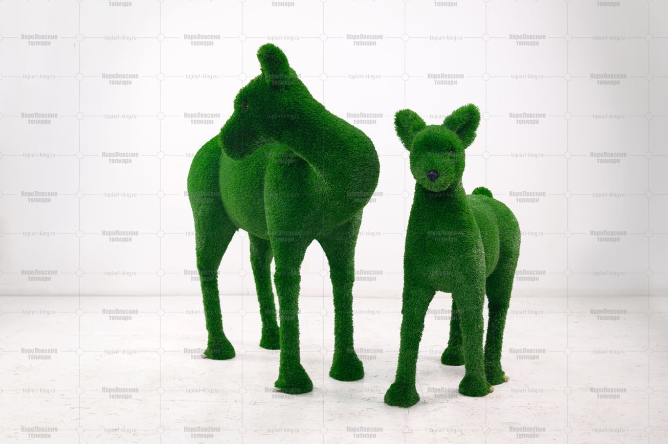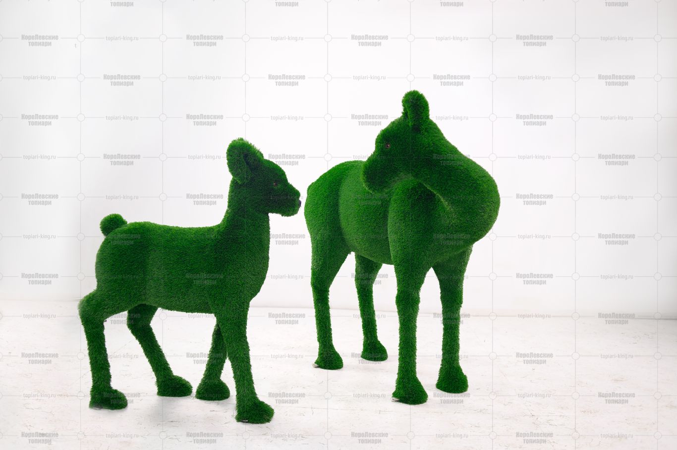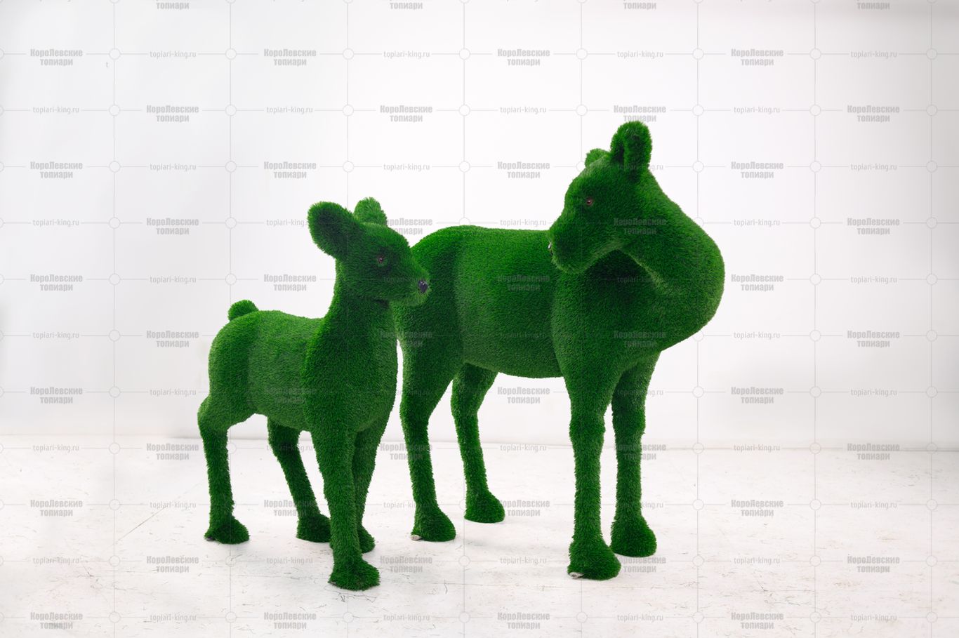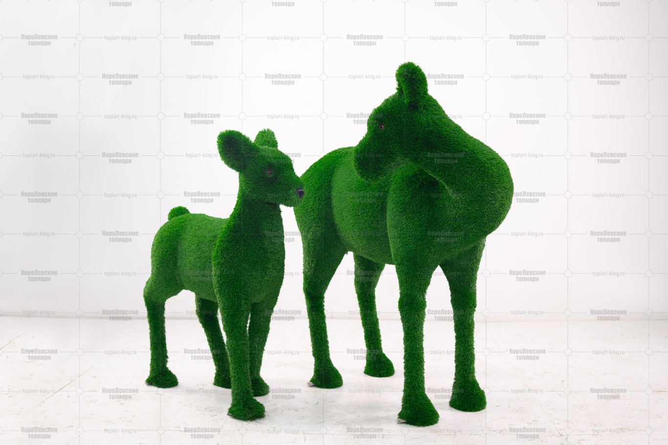Топиари композиция олени, мама с малышом Севой — газон Deluxe Green