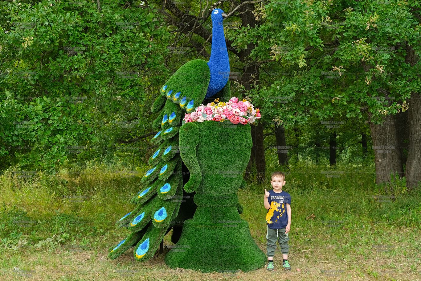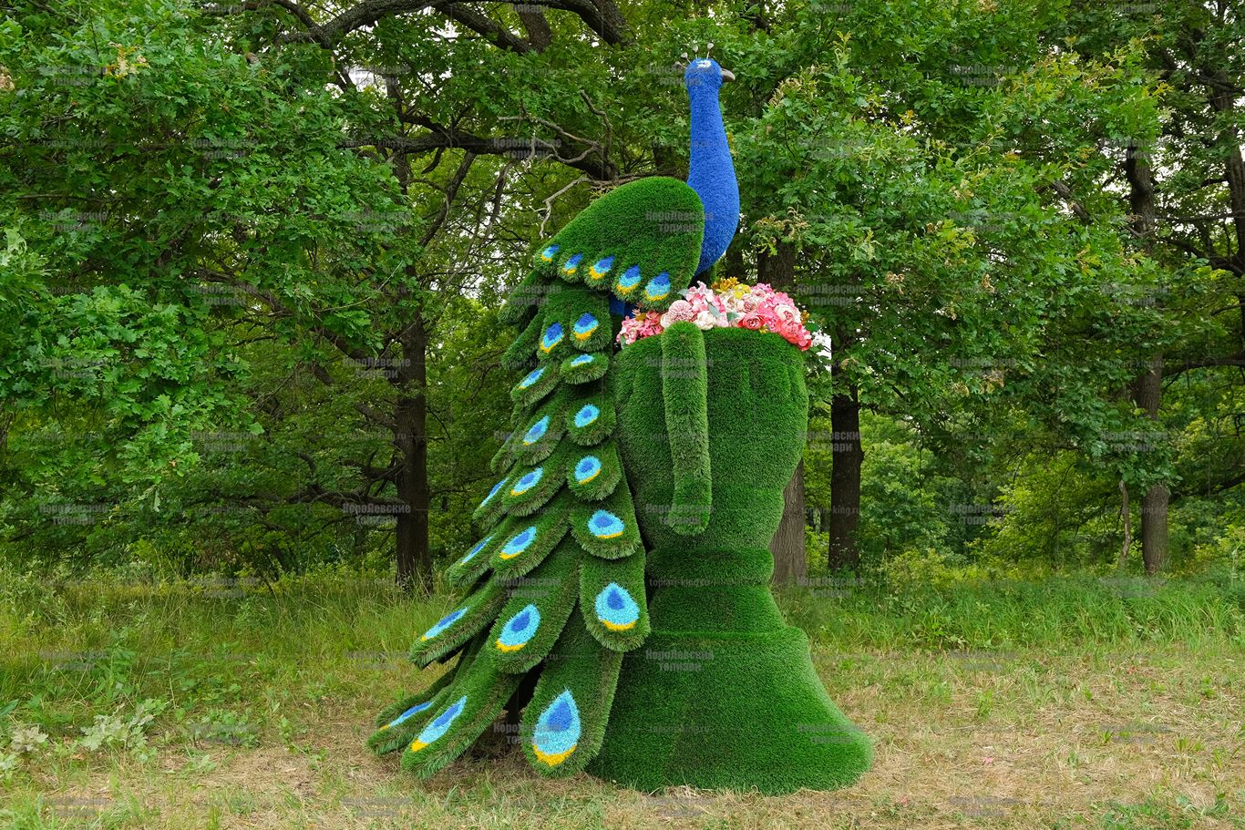 Топиари композиция павлин Корица на вазоне — газон Deluxe+ Eco