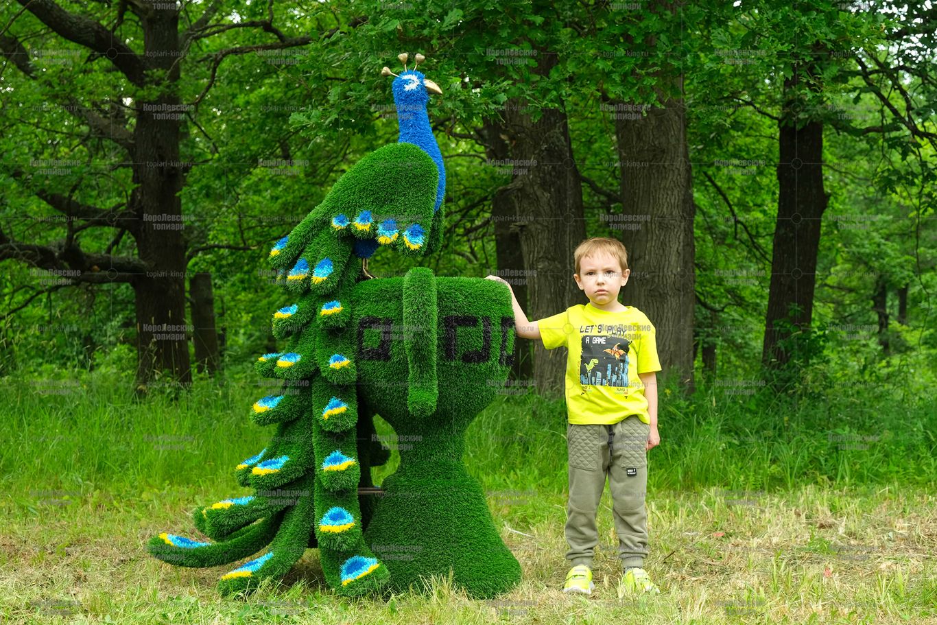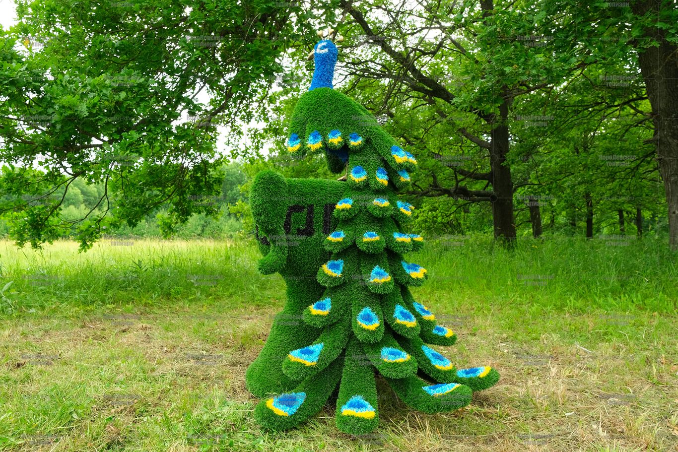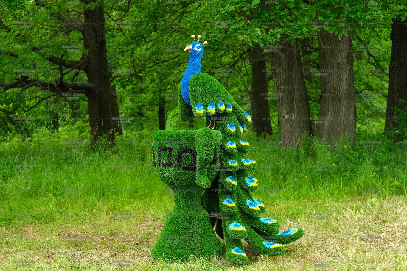 Топиари композиция павлин на вазоне греческом — газон Eco
