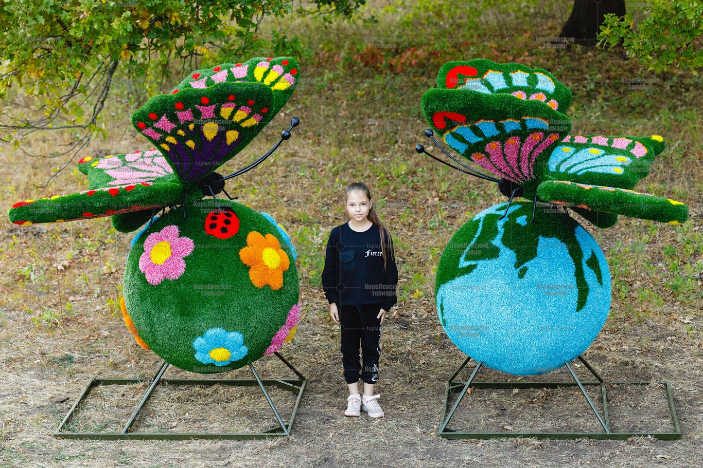 Топиари композиция поляна и глобус с бабочками — газон Eco