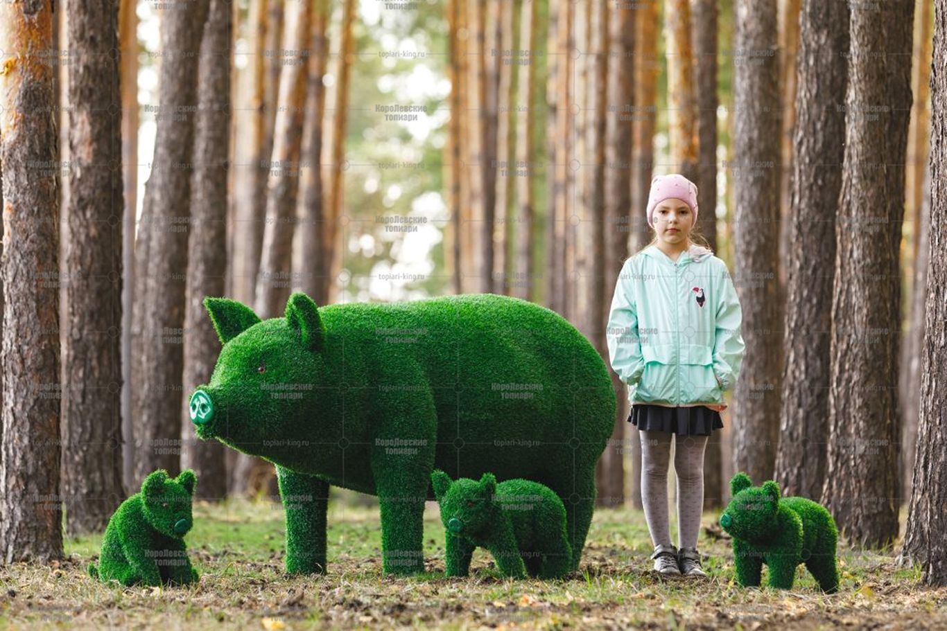Топиари композиция поросята мама и детки, 4 шт — газон Eco
