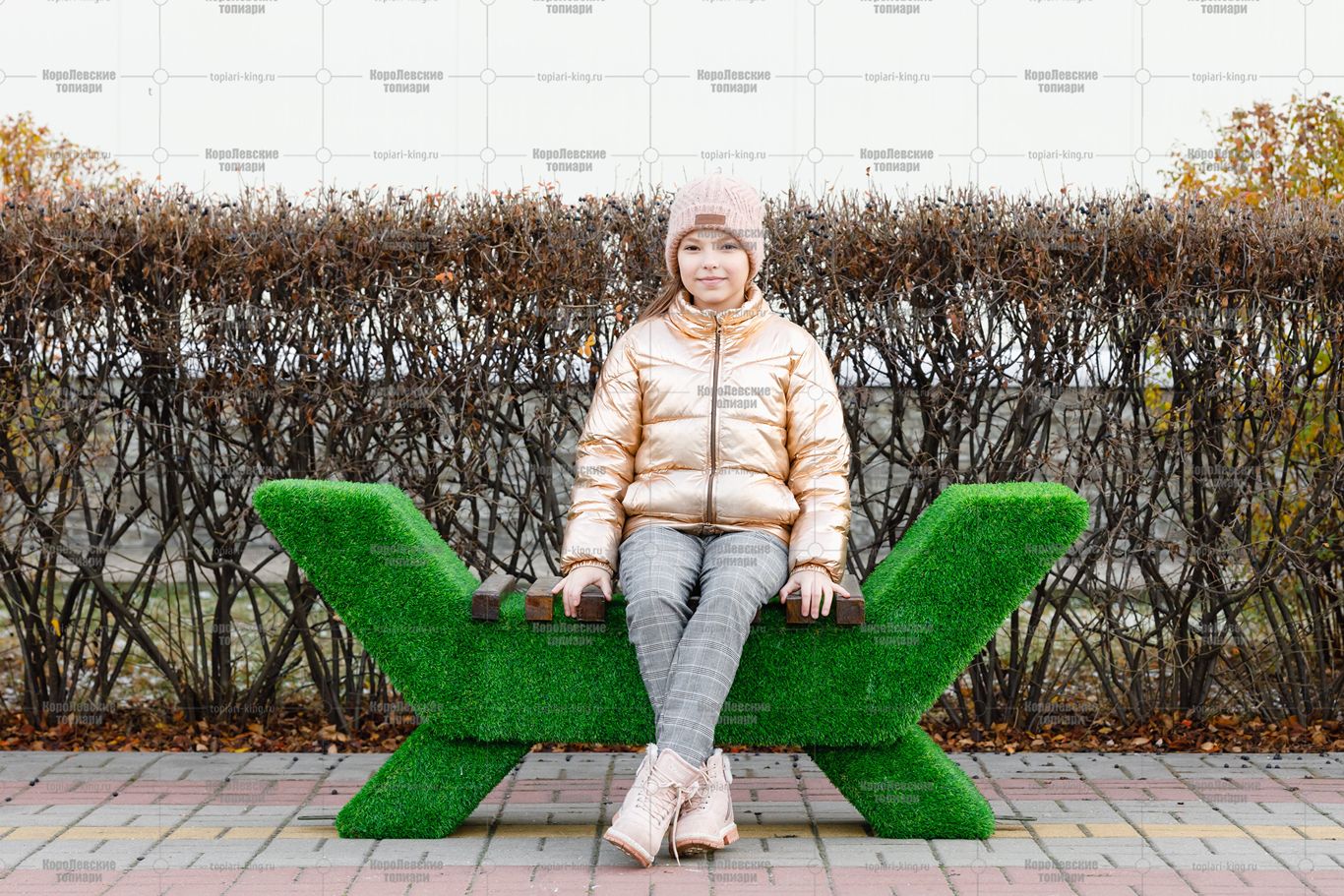 Топиари композиция рояль Мариэля с лавочкой — газон Eco+