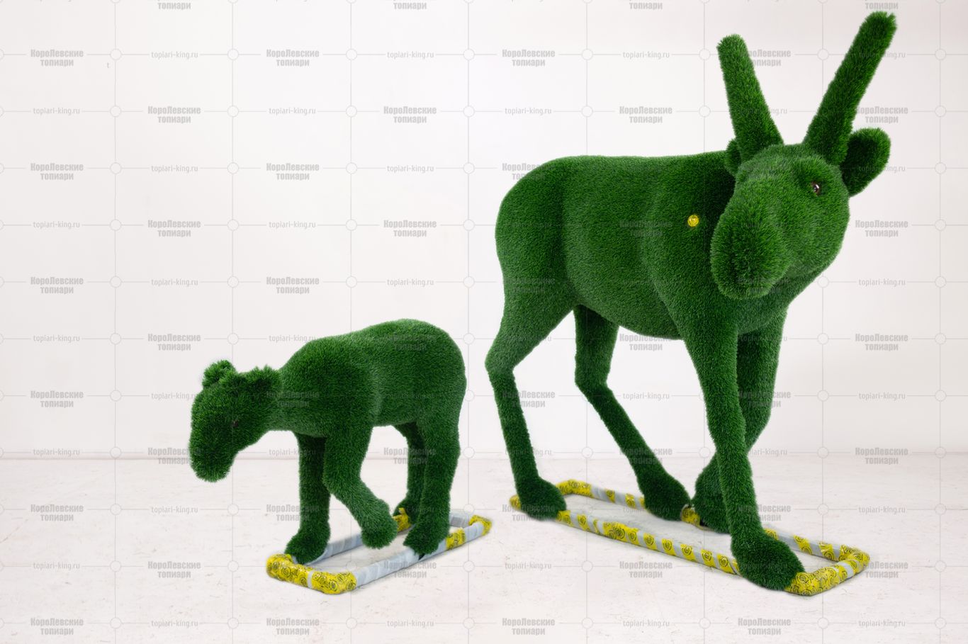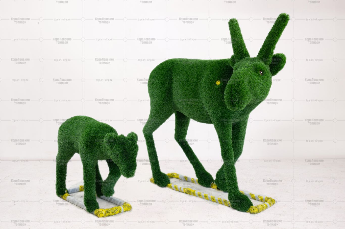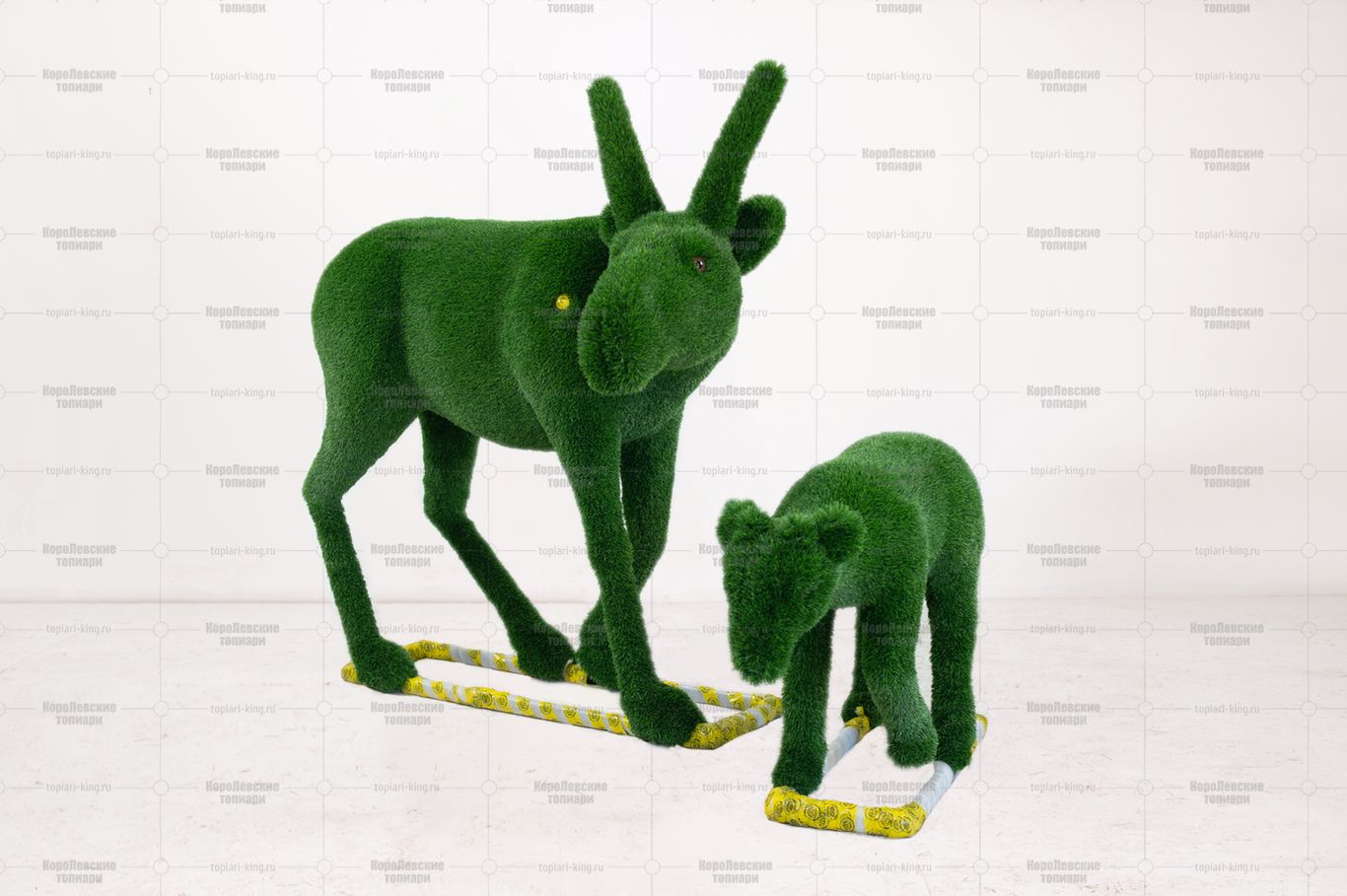 Топиари композиция Сайгаки папа и малыш — газон Deluxe Green