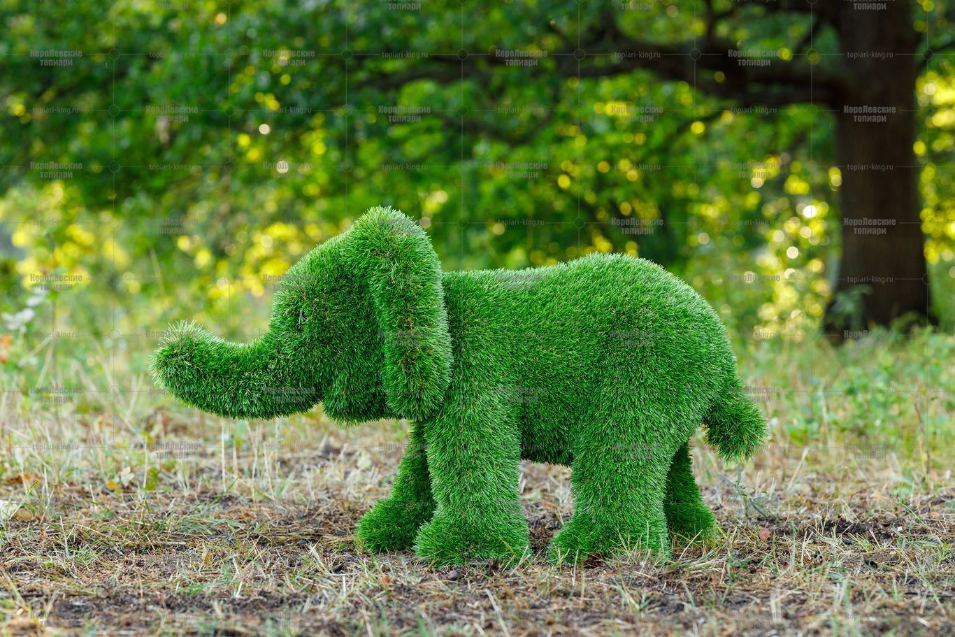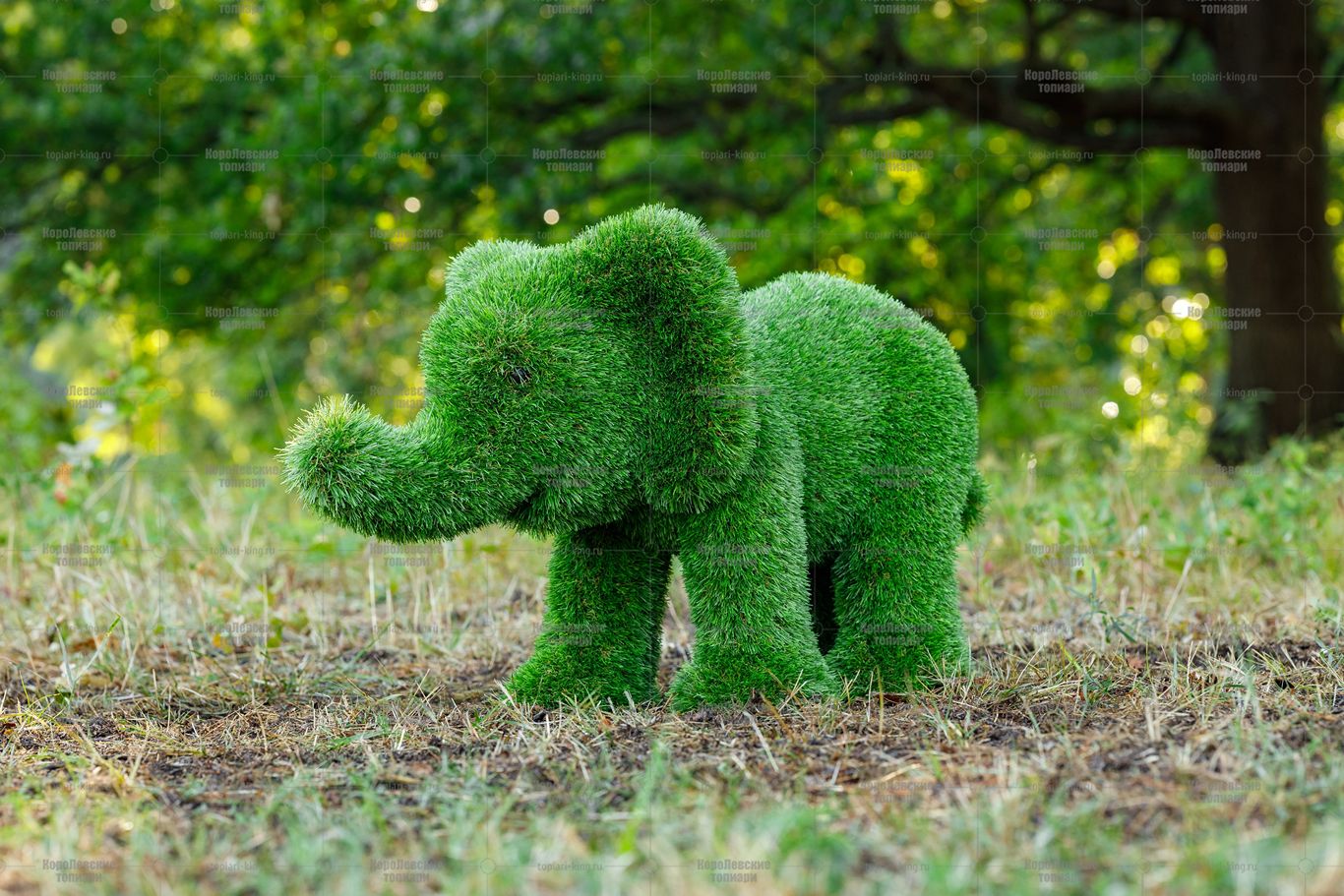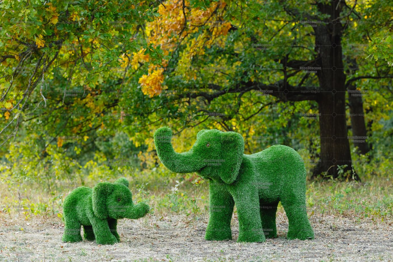 Топиари композиция слон Патрик, средний и Кроха — газон Premium
