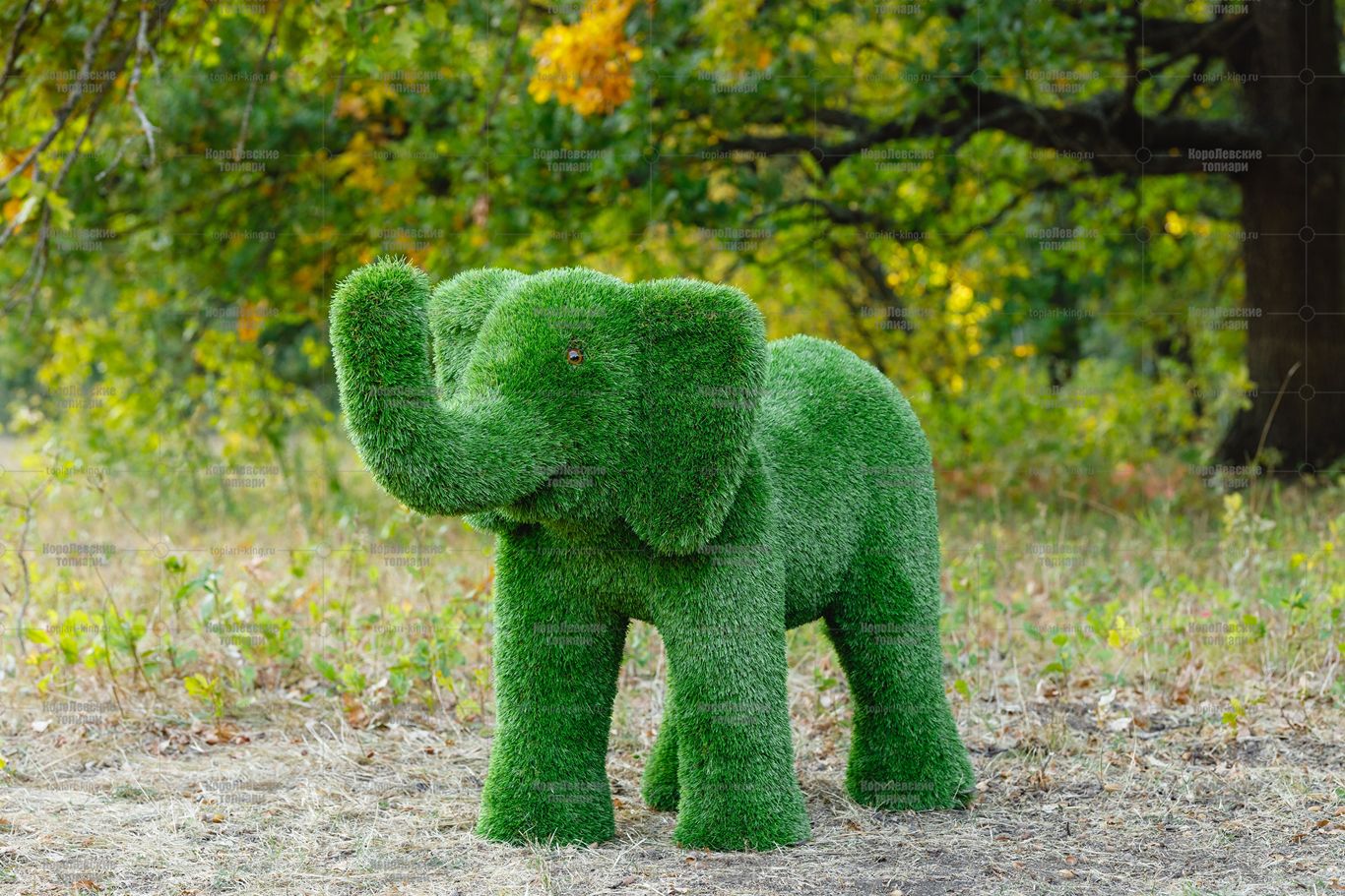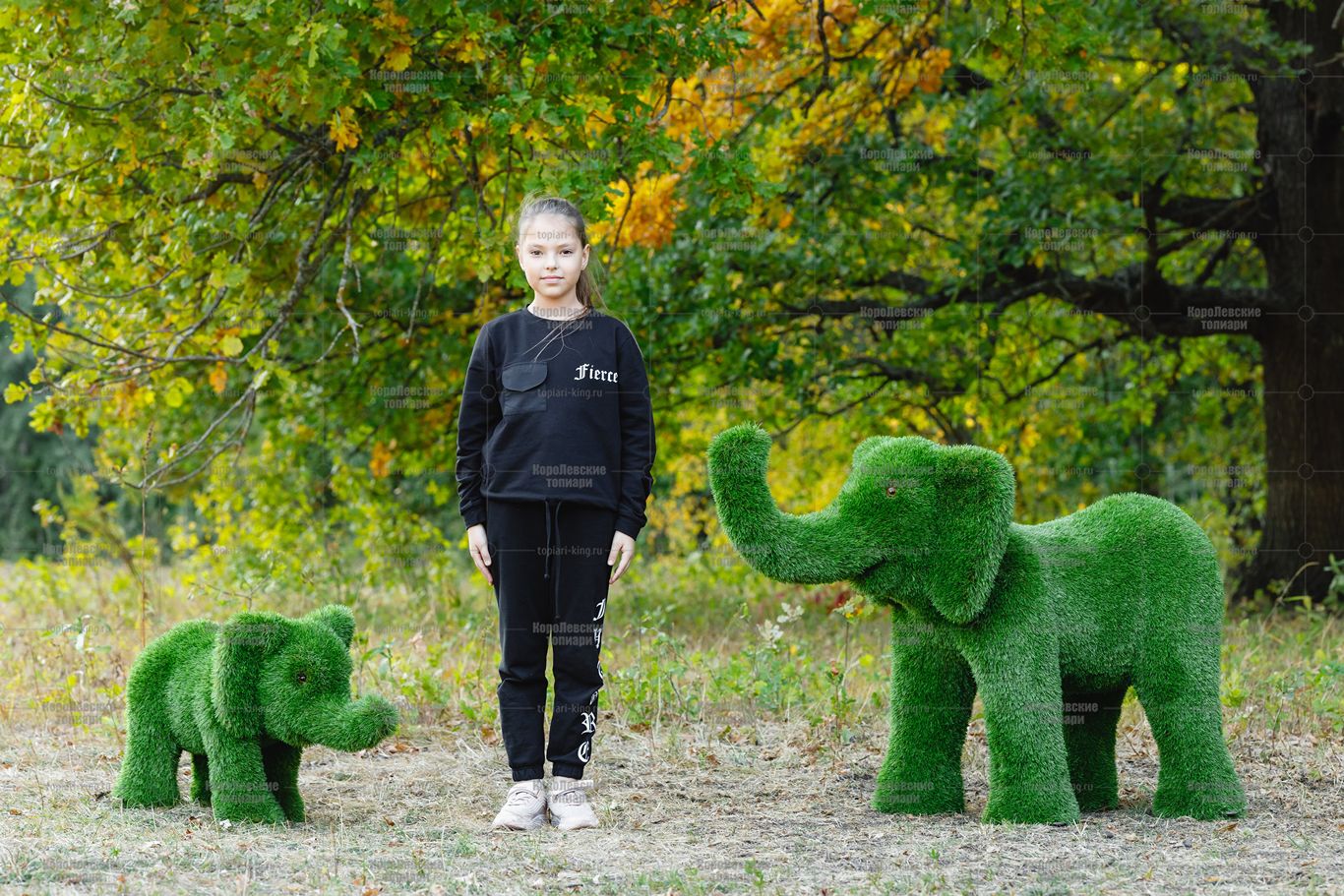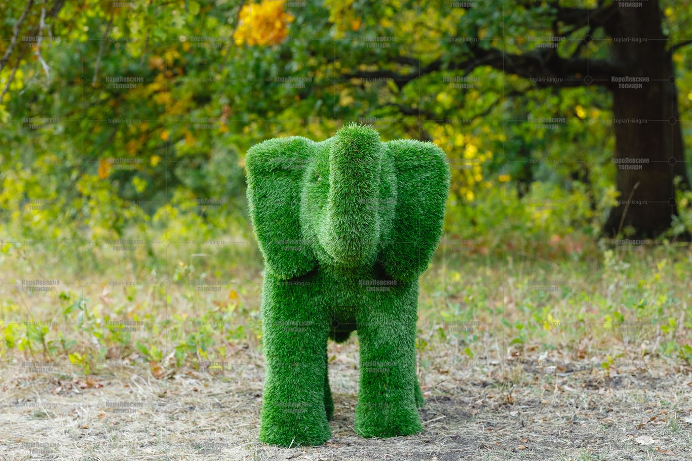 Топиари композиция слон Патрик, средний и Кроха — газон Premium