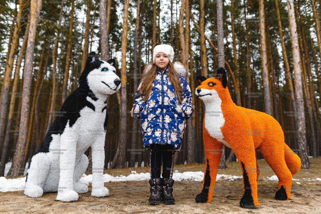 Состав композиции: собака хаски, Бреста (ДхШхВ) 125х70х120см;лисичка Красотка (ДхШхВ) 185х40х105см; |