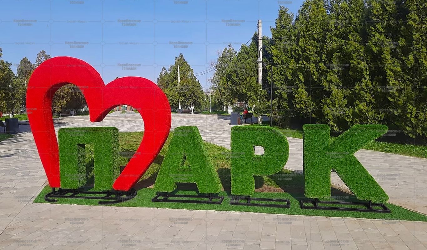 Топиари композиция стела сердце с буквами Парк — газон Eco