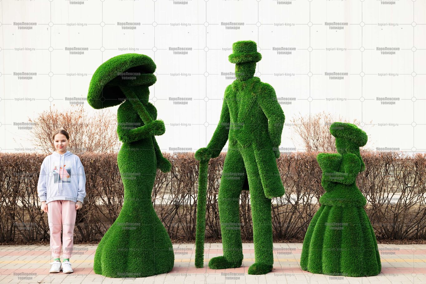 Топиари композиция светская встреча №5 (леди с зонтиком, джентльмен, девочка с букетом)-газон Deluxe