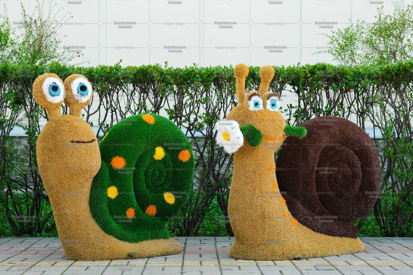 Топиари композиция улитки Скитлс и Марика — газон Eco