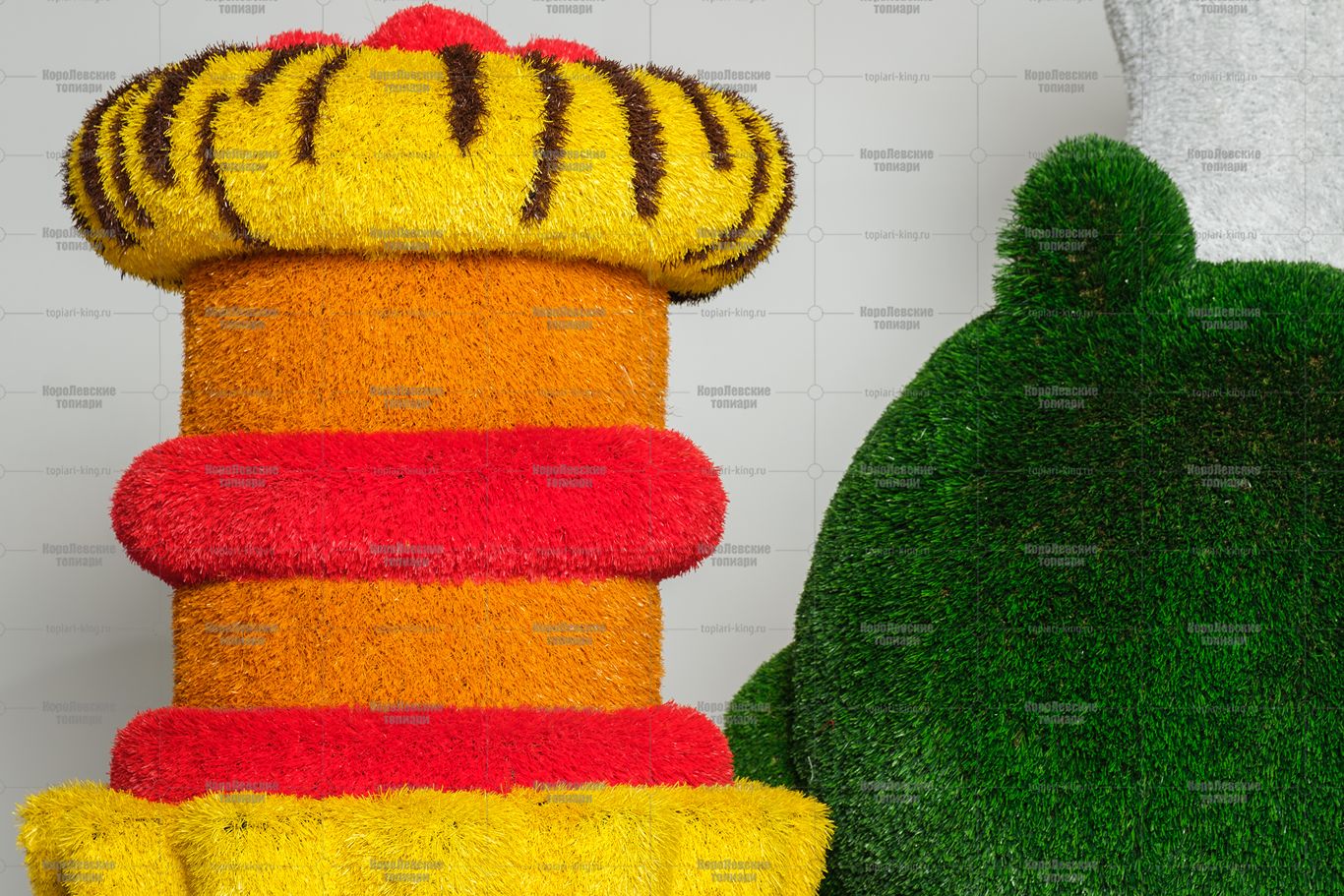 Превратите ваш сад, двор, террасу или входную зону в настоящее произведение искусства с помощью декоративной фигуры топиари. Каждая фигура изготовлена из прочного металлического каркаса и покрыта высококачественным искусственным газоном, устойчивым к влаге, ультрафиолету и перепадам температур.