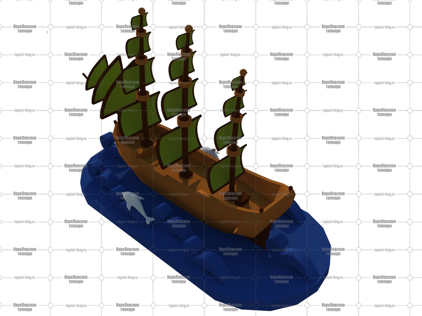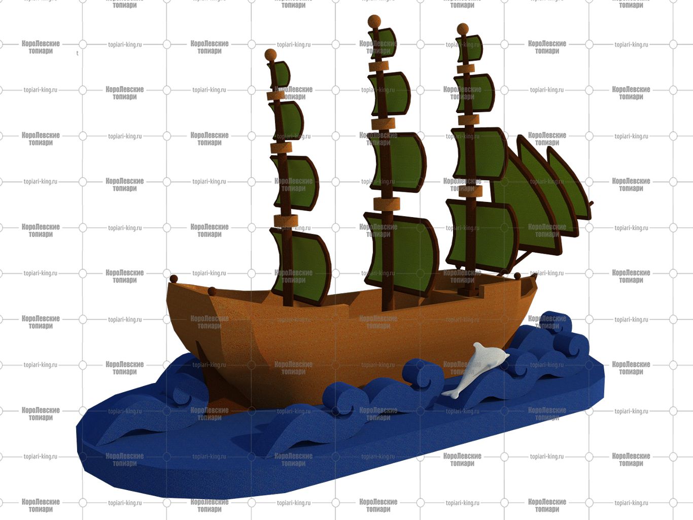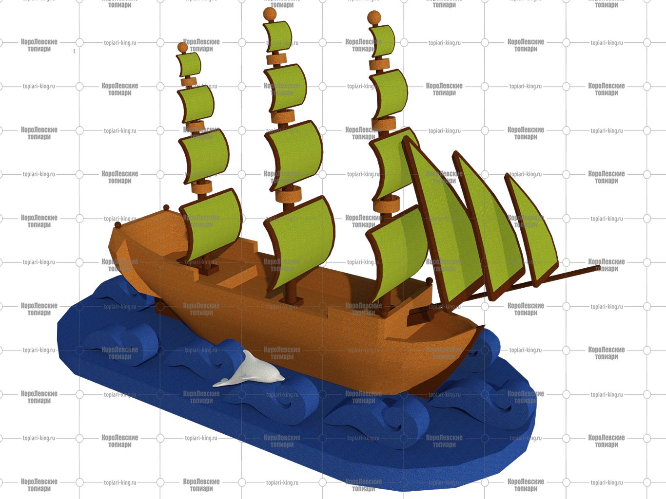 Топиари корабль, h — 1000 см, цветной — газон Eco