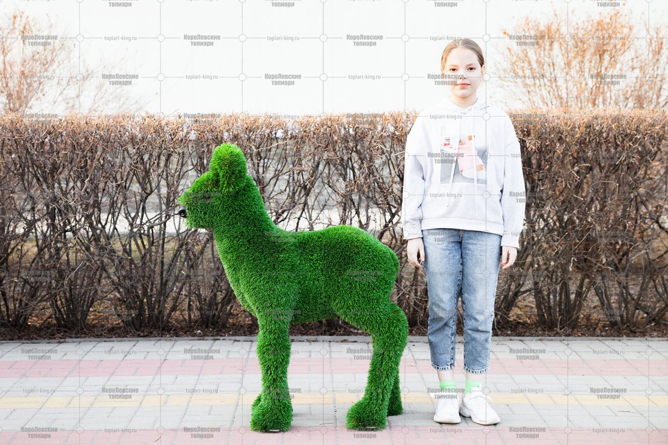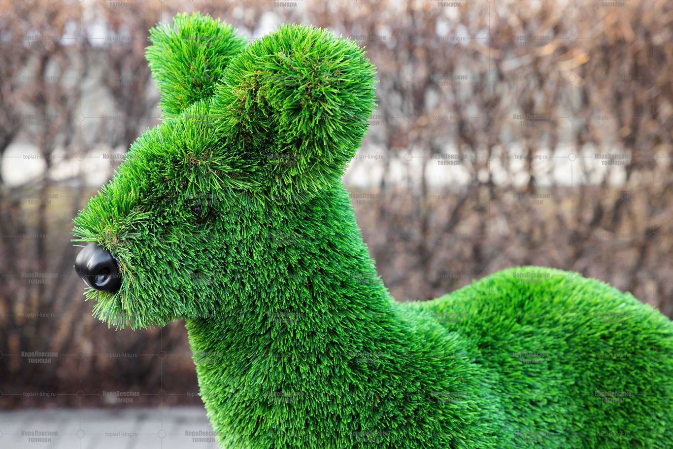 Превратите ваш сад, двор, террасу или входную зону в настоящее произведение искусства с помощью декоративной фигуры топиари. Каждая фигура изготовлена из прочного металлического каркаса и покрыта высококачественным искусственным газоном, устойчивым к влаге, ультрафиолету и перепадам температур.