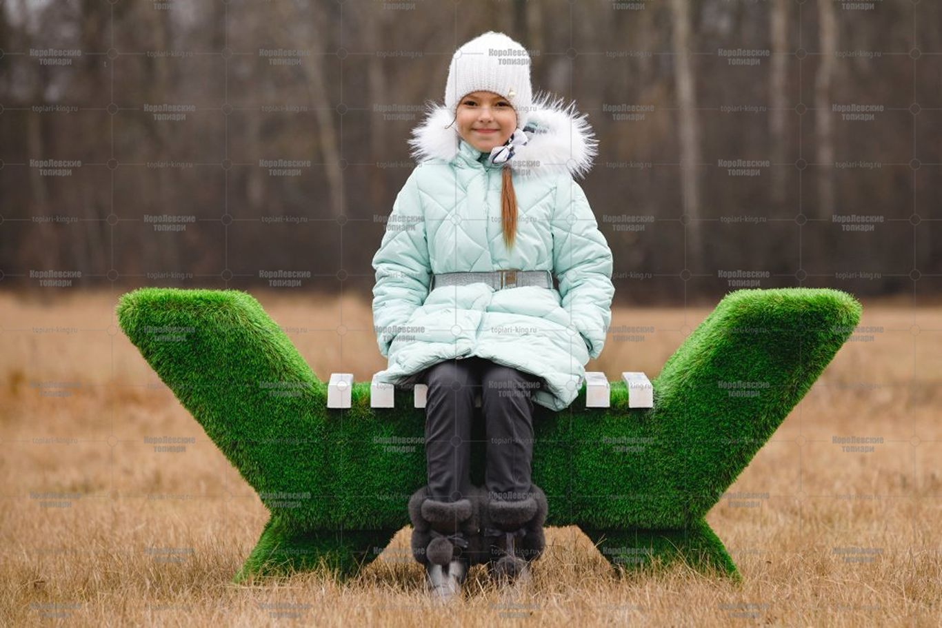 Топиари лавочка, светлая, сосна — газон Premium