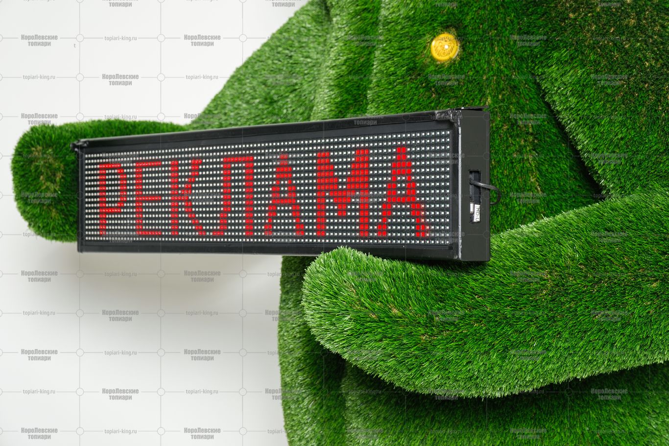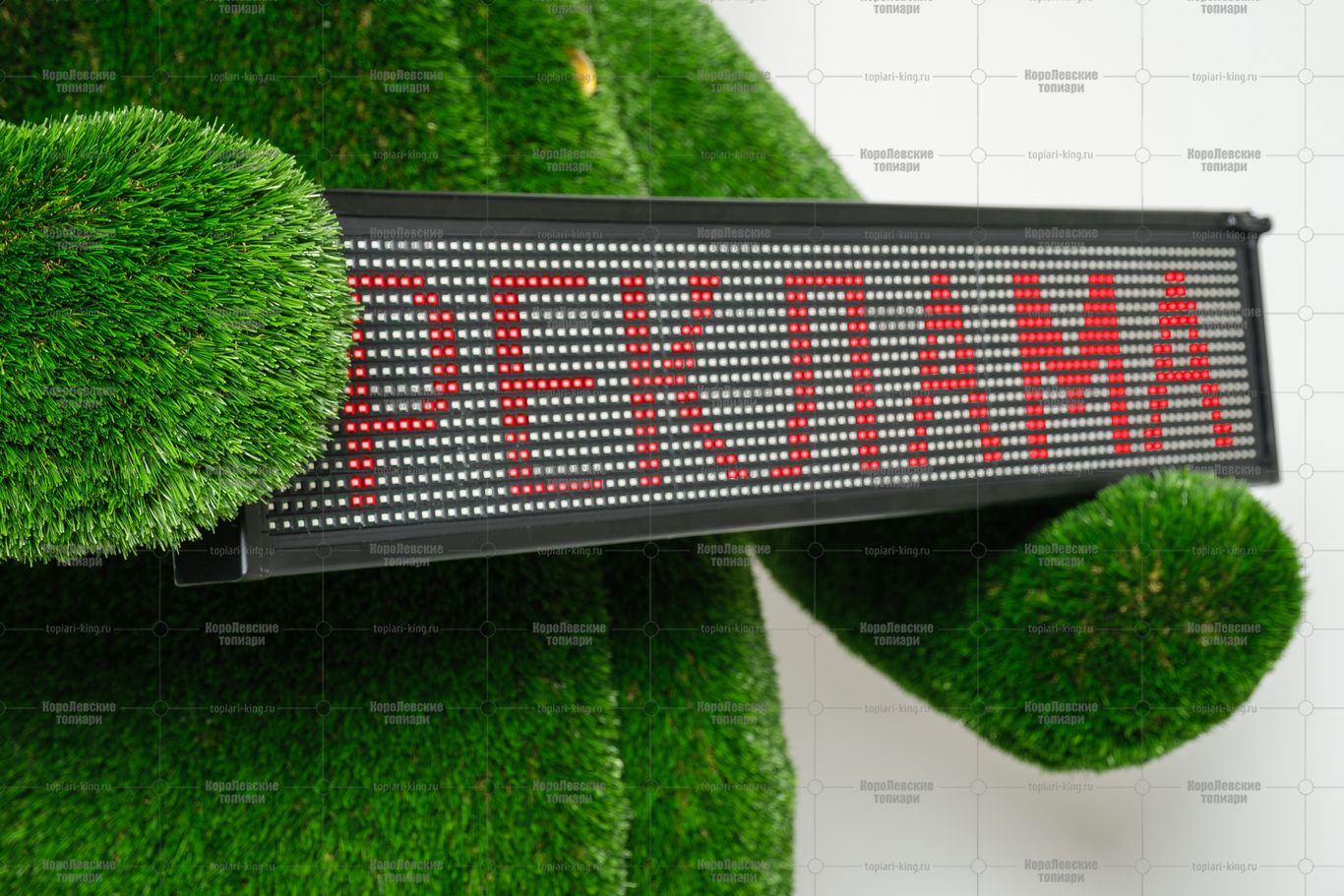 Превратите ваш сад, двор, террасу или входную зону в настоящее произведение искусства с помощью декоративной фигуры топиари. Каждая фигура изготовлена из прочного металлического каркаса и покрыта высококачественным искусственным газоном, устойчивым к влаге, ультрафиолету и перепадам температур.